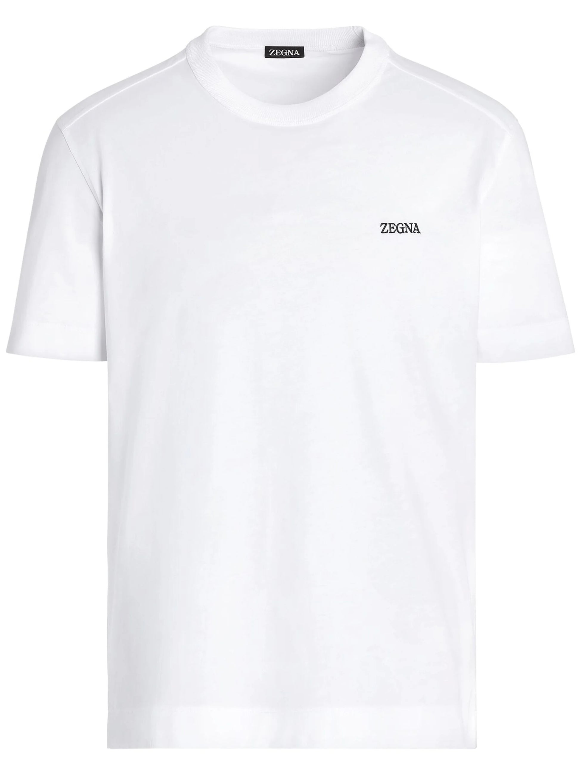 optical white cotton embroidered logo at the chest crew neck short sleeves straight hem