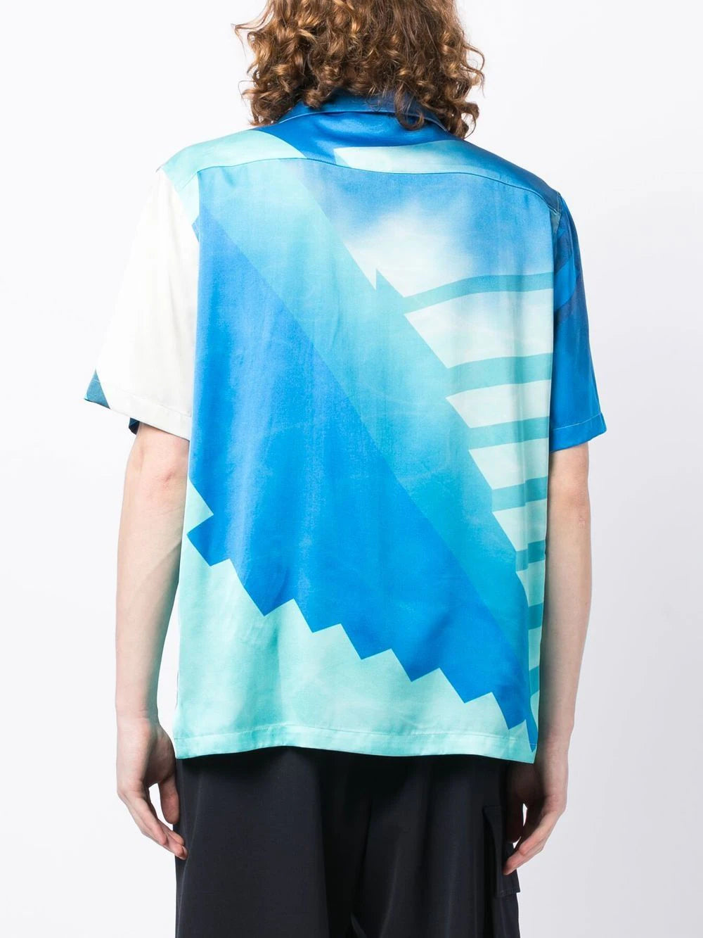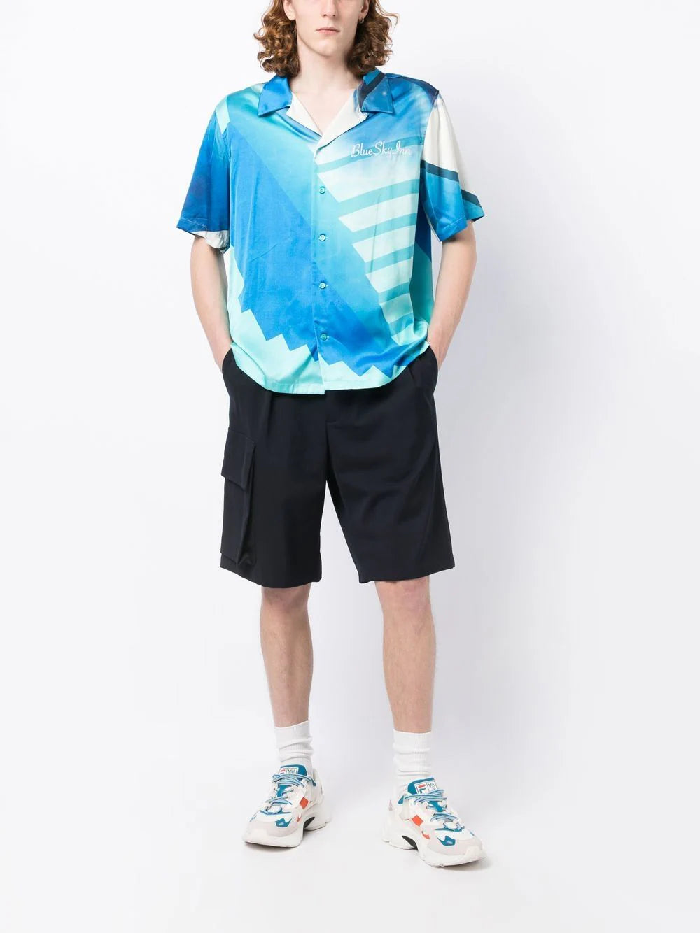 abstract-print short-sleeved shirt from BLUE SKY INN featuring sky blue, embroidered logo, spread collar, front button fastening, short sleeves and straight hem.