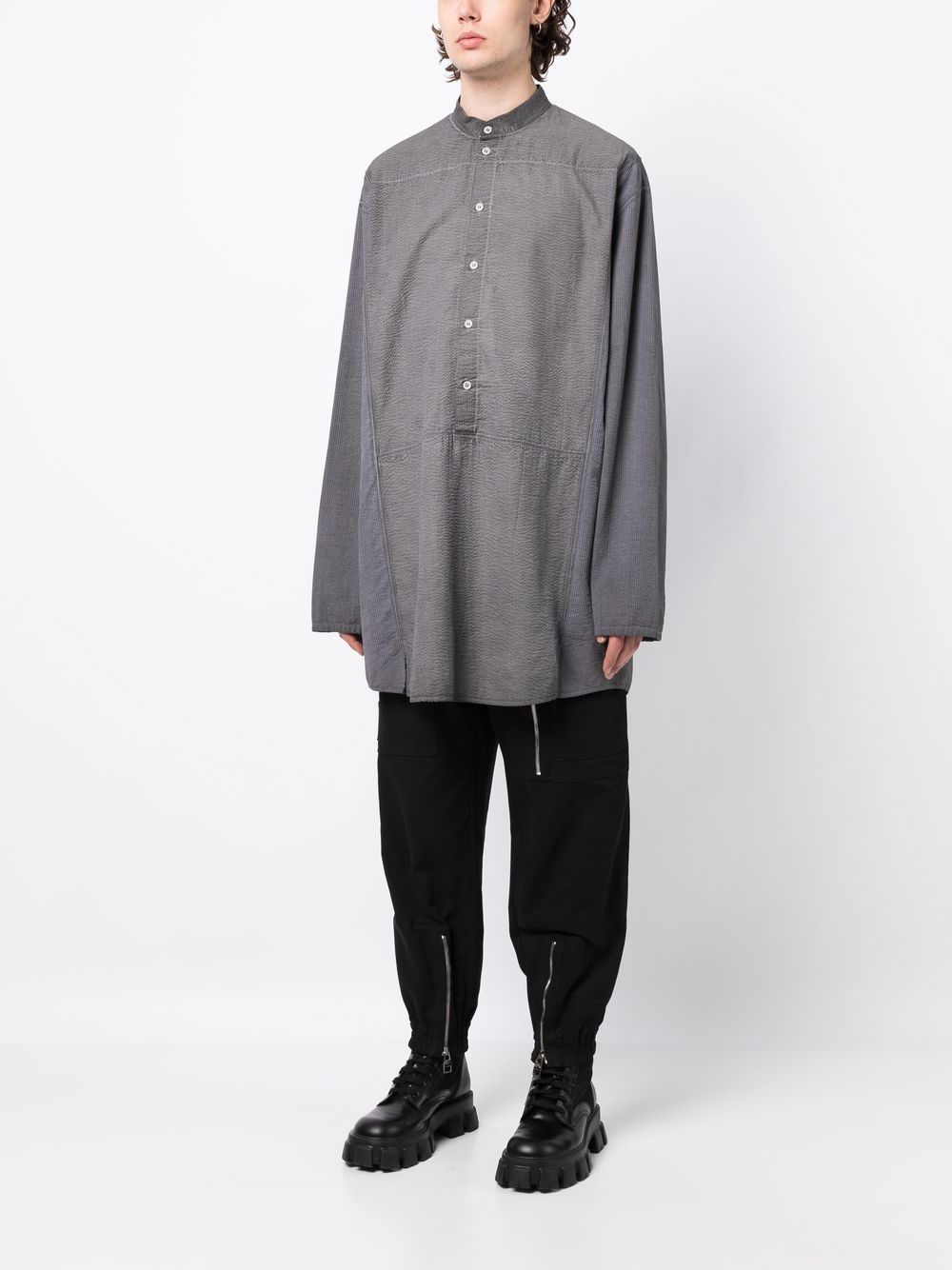 band-collar cotton shirt from NICOLAS ANDREAS TARALIS featuring light grey, cotton, band collar, front button placket, long sleeves and curved hem.