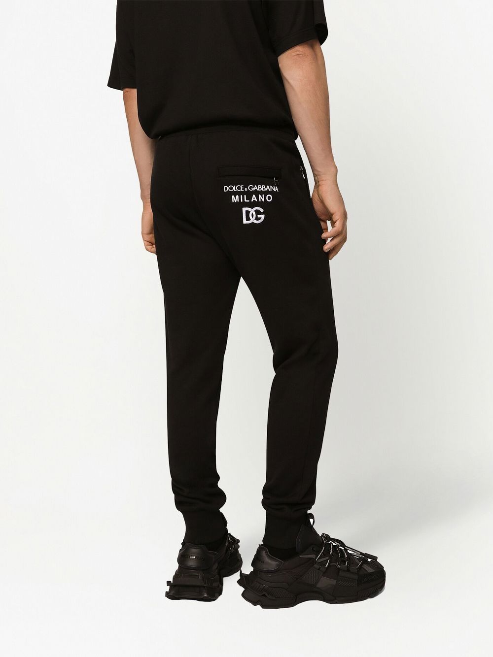 DG Essentials jersey track pants from DOLCE & GABBANA featuring black/white, cotton, jersey knit, embroidered logo to the rear, elasticated drawstring waistband, elasticated ankles, two side zip-fastening pockets and rear zip-fastening pocket.