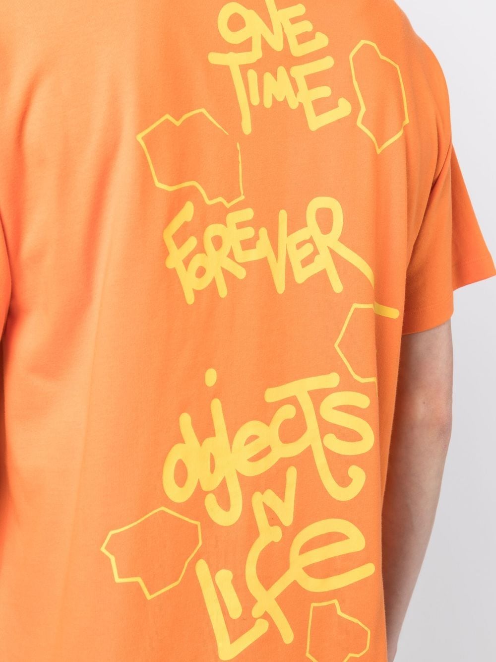 slogan-print T-shirt from OBJECTS IV LIFE featuring carrot orange, cotton, slogan print to the rear, logo print at the chest, crew neck, short sleeves and straight hem.