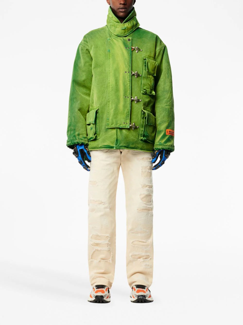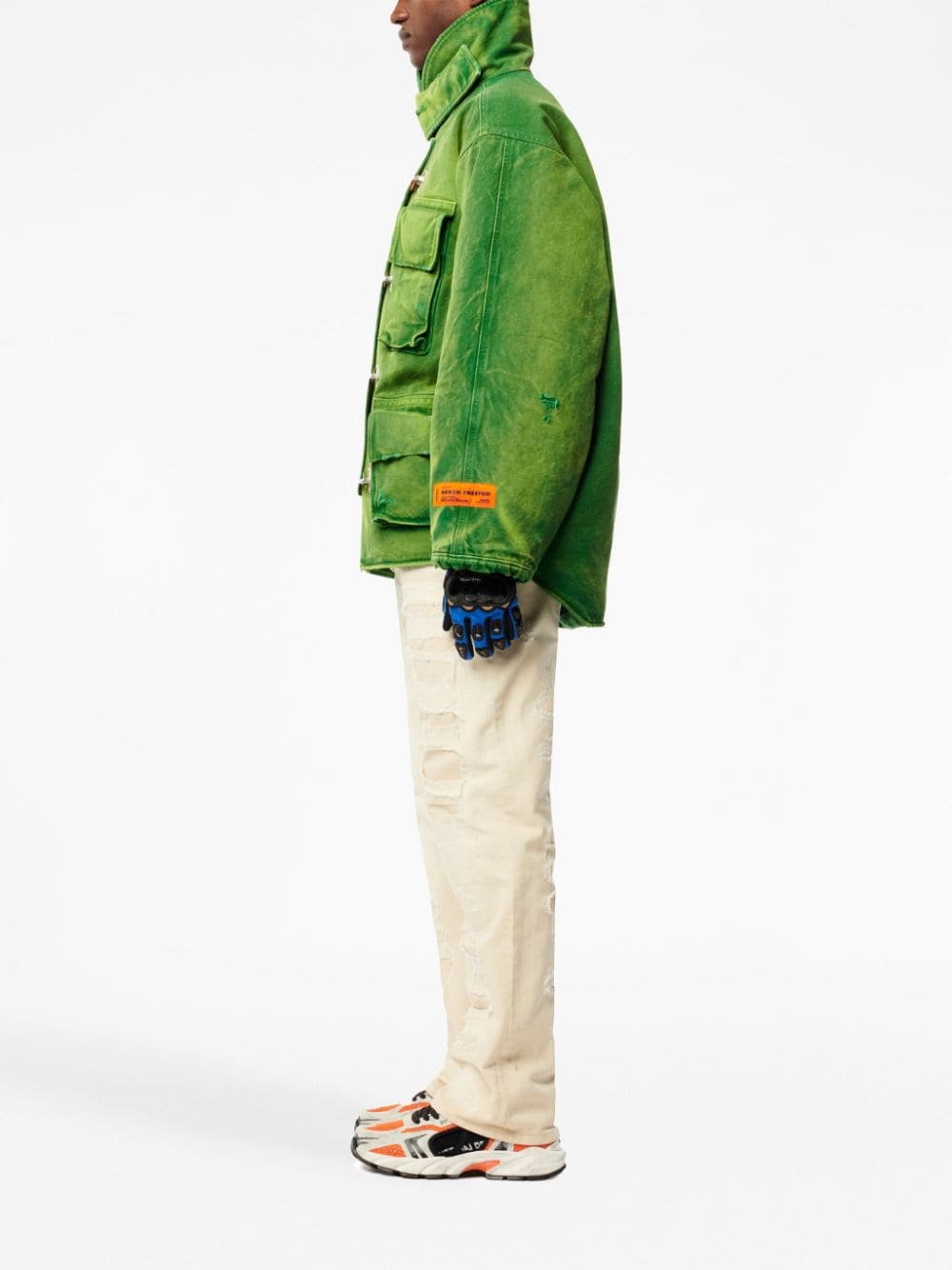 straight-leg distressed-finish jeans from HERON PRESTON featuring ivory white, cotton, distressed finish, ripped detailing, belt loops, concealed fly and button fastening, classic five pockets and straight leg.