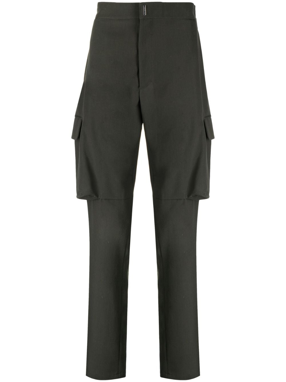 straight-leg wool cargo trousers from Givenchy featuring olive green, wool, straight leg, concealed front fastening, rear elasticated waistband, two side inset pockets, two side cargo pockets and two rear welt pockets.