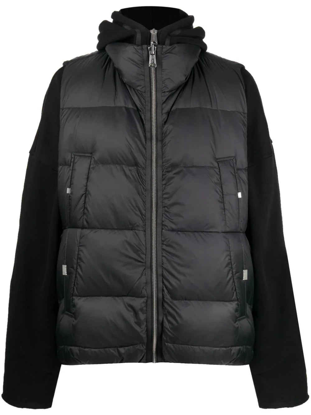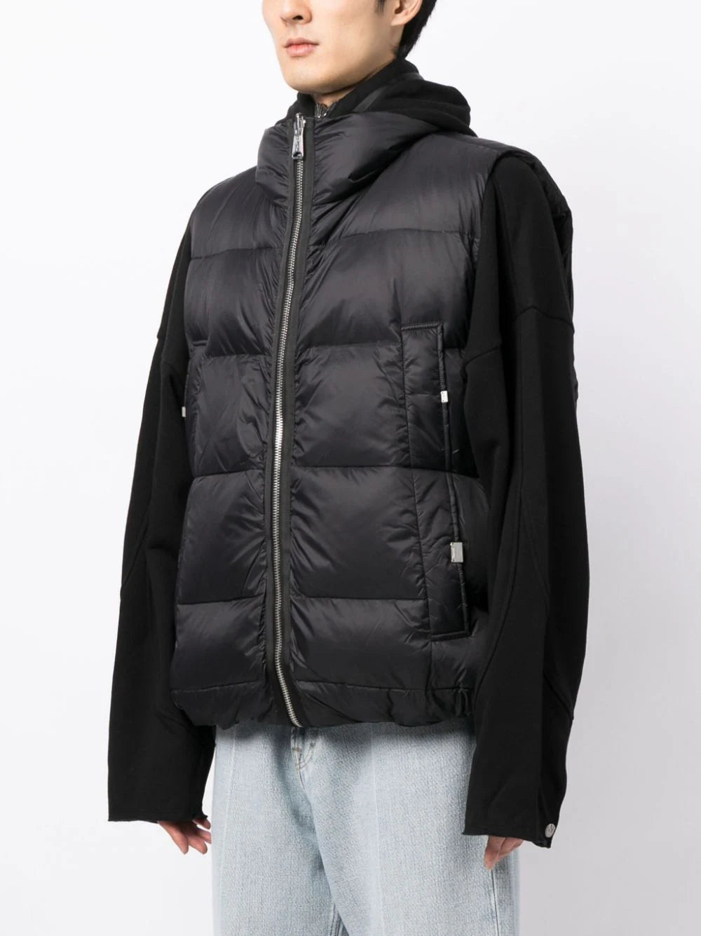 high-neck padded gilet from C2H4 featuring black, cotton, down-feather filling, front zip fastening, two side welt pockets, high neck, sleeveless and straight hem.