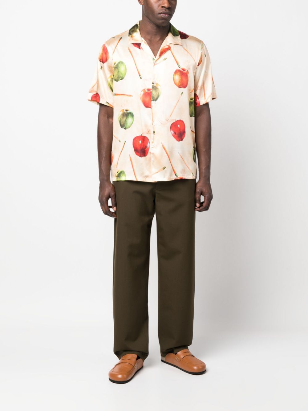 apple-motif silk shirt from NAHMIAS featuring white/multicolour, silk, all-over graphic print, notched collar, front button fastening, short sleeves and straight hem.