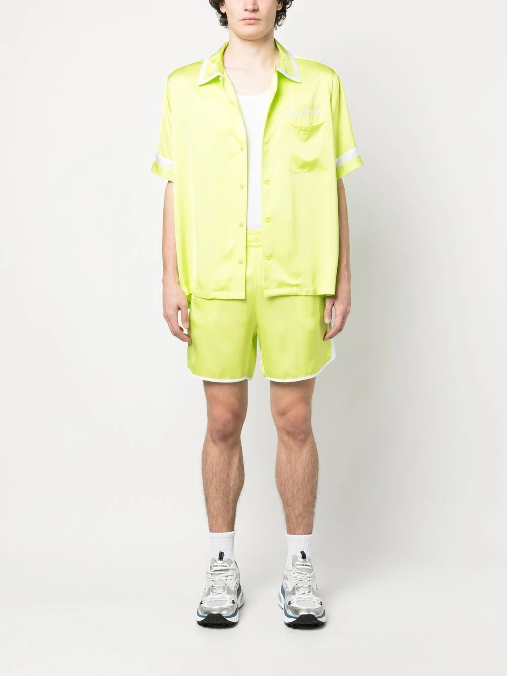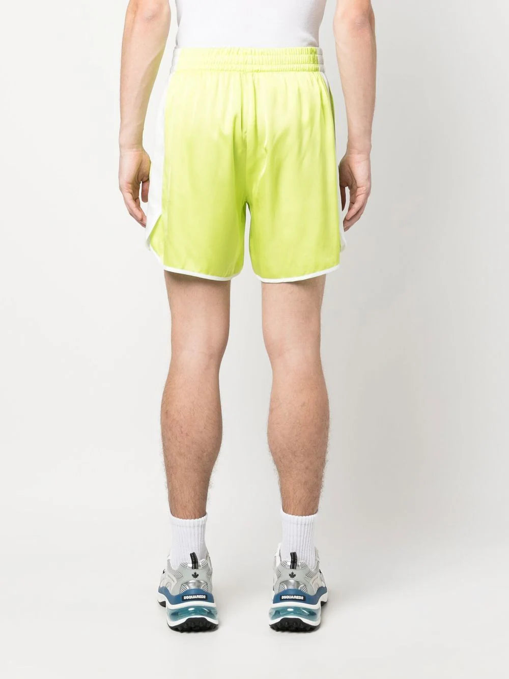 contrasting-sides track shorts from BLUE SKY INN featuring lime green, white, satin finish, elasticated waistband, short side slits and thigh-length.