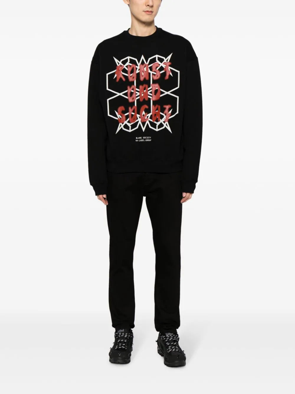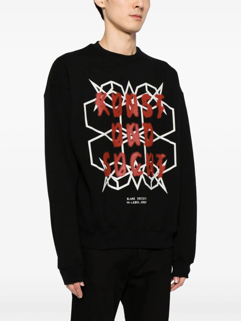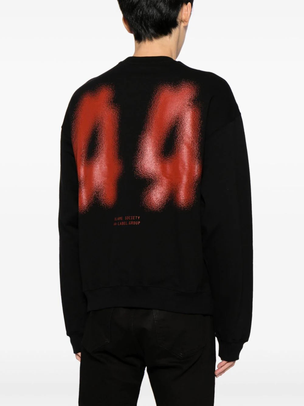 graphic-print cotton sweatshirt from 44 LABEL GROUP featuring graphic print to the front, logo print to the rear, crew neck, drop shoulder, long sleeves, ribbed cuffs and hem, jet black and cotton.