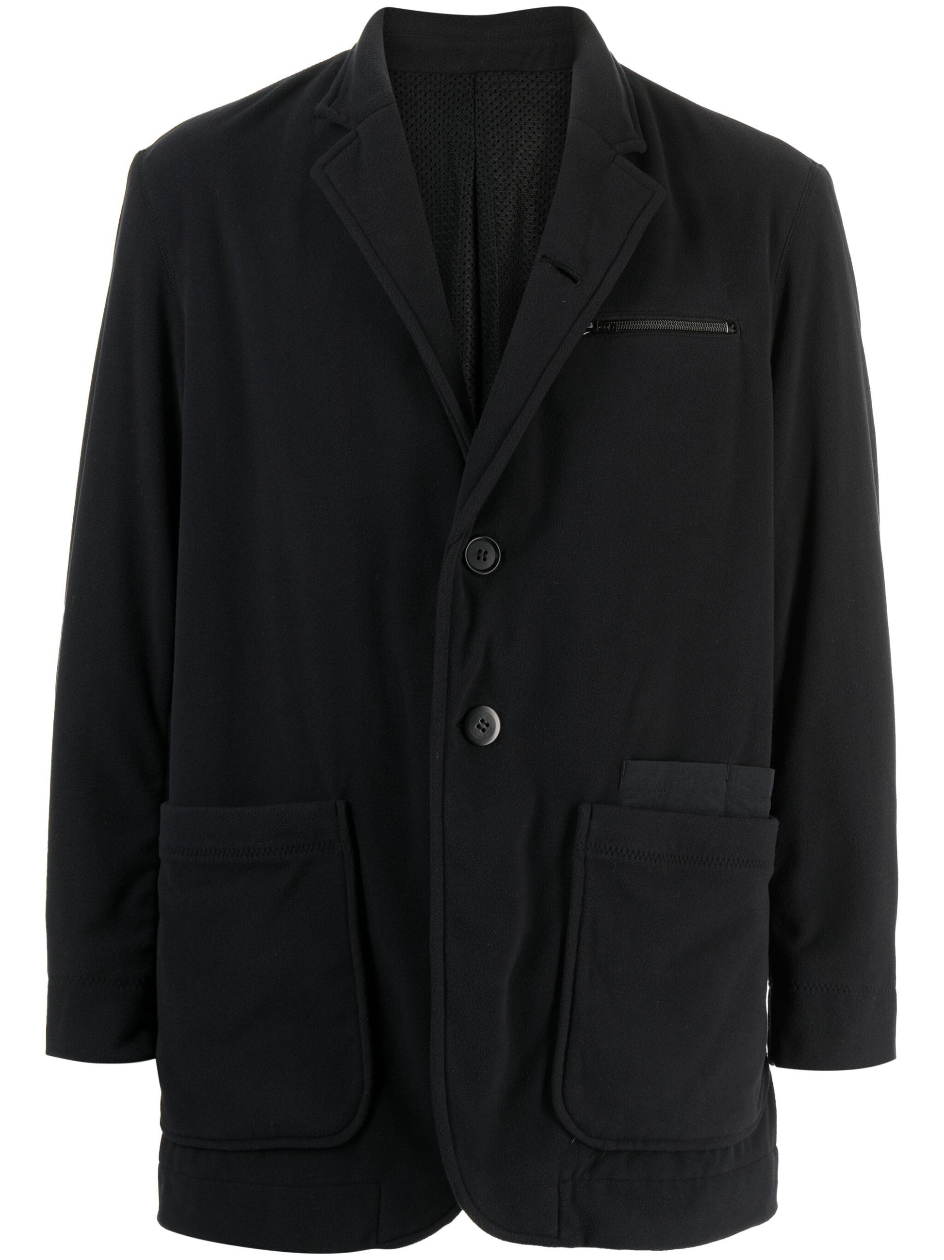 black appliqué logo front button fastening long sleeves zip-fastening chest pocket two rear pouch pockets zip details cuff zips