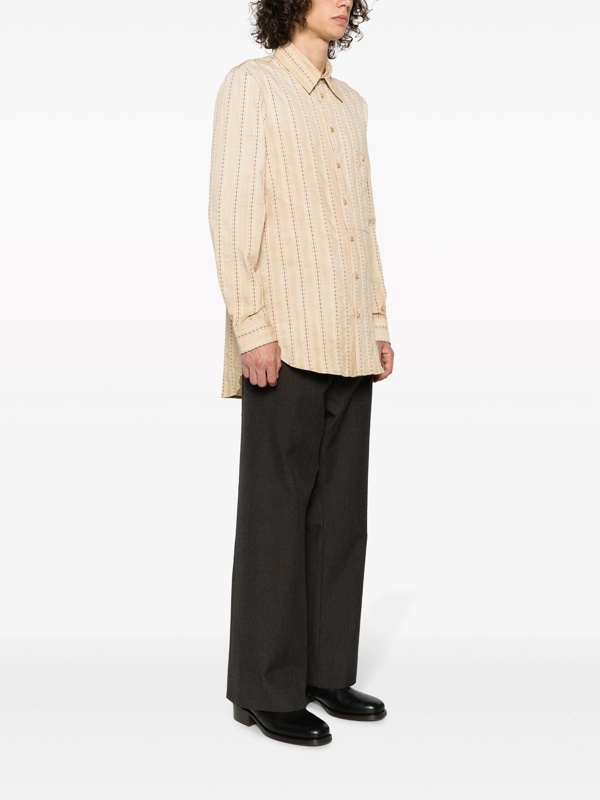Tab striped cotton shirt from UMA WANG featuring beige, cotton, stripe print, classic collar, front button fastening, long sleeves, buttoned cuffs and curved hem.