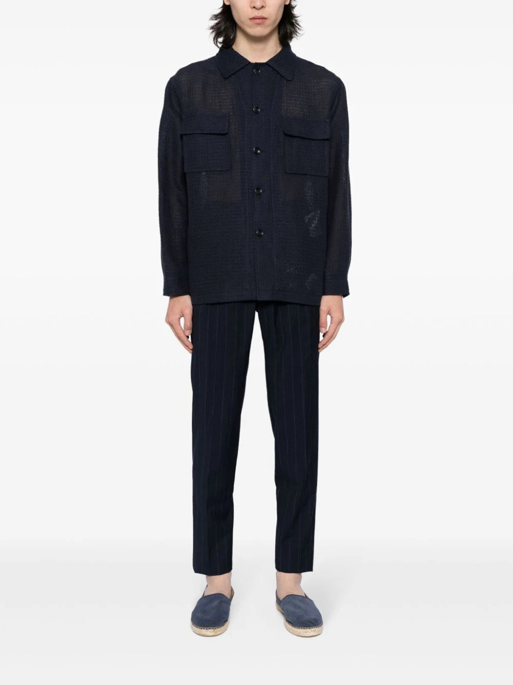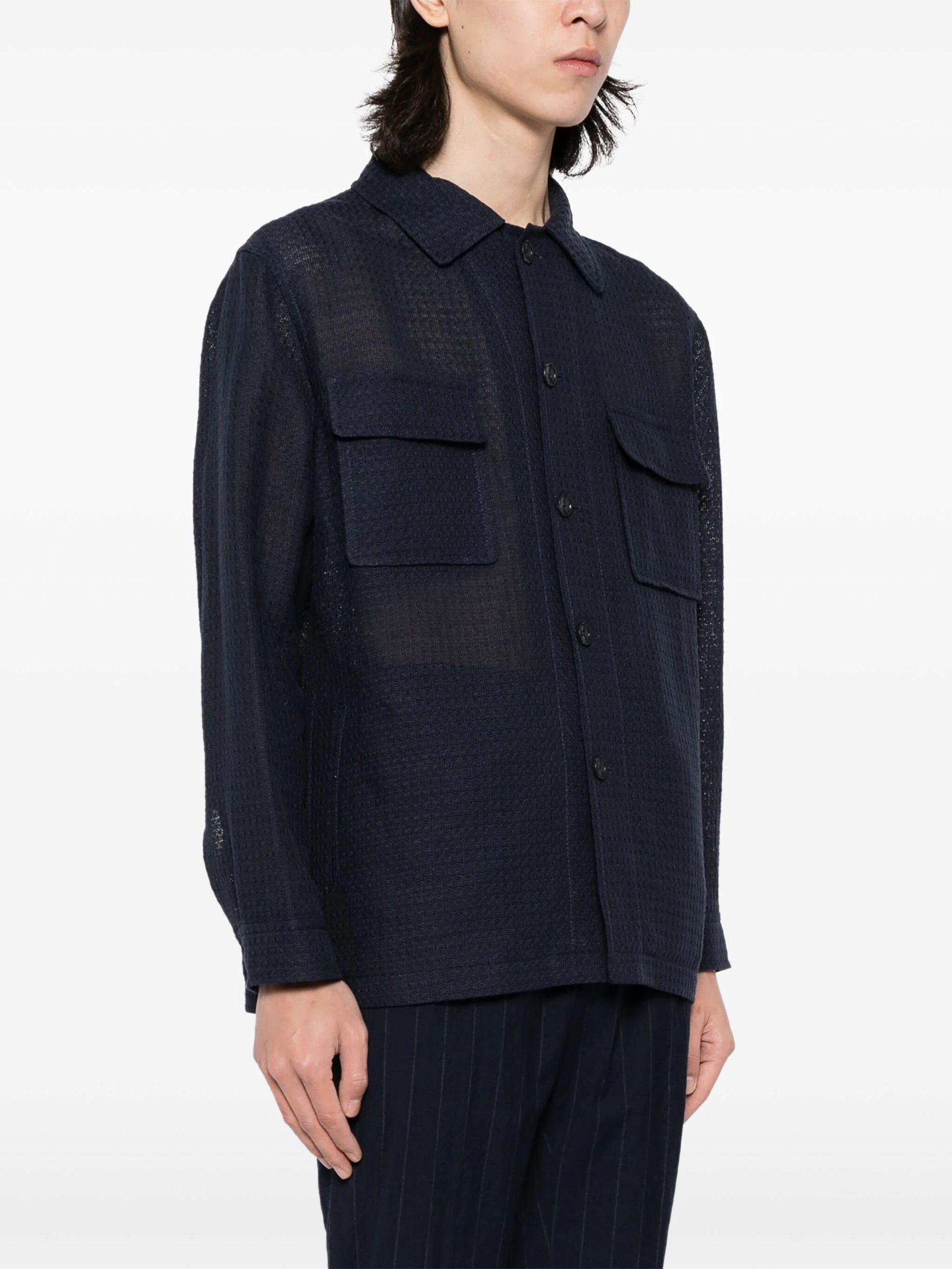 navy blue textured finish spread collar front button fastening chest flap pockets long sleeves buttoned-cuff sleeves straight hem