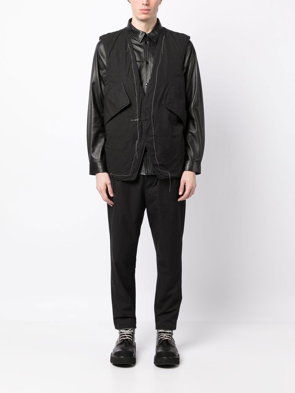cotton tapered trousers from NICOLAS ANDREAS TARALIS featuring black, cotton, dart detailing, mid-rise, belt loops, concealed front fastening, rear welt pocket, rear welt pocket, rear flap pocket and tapered leg.