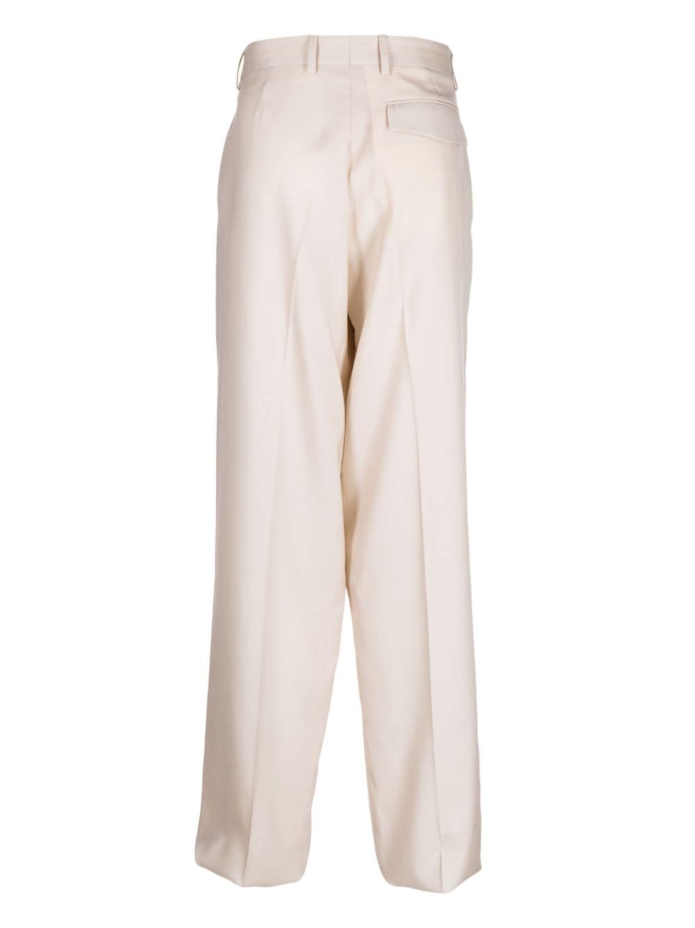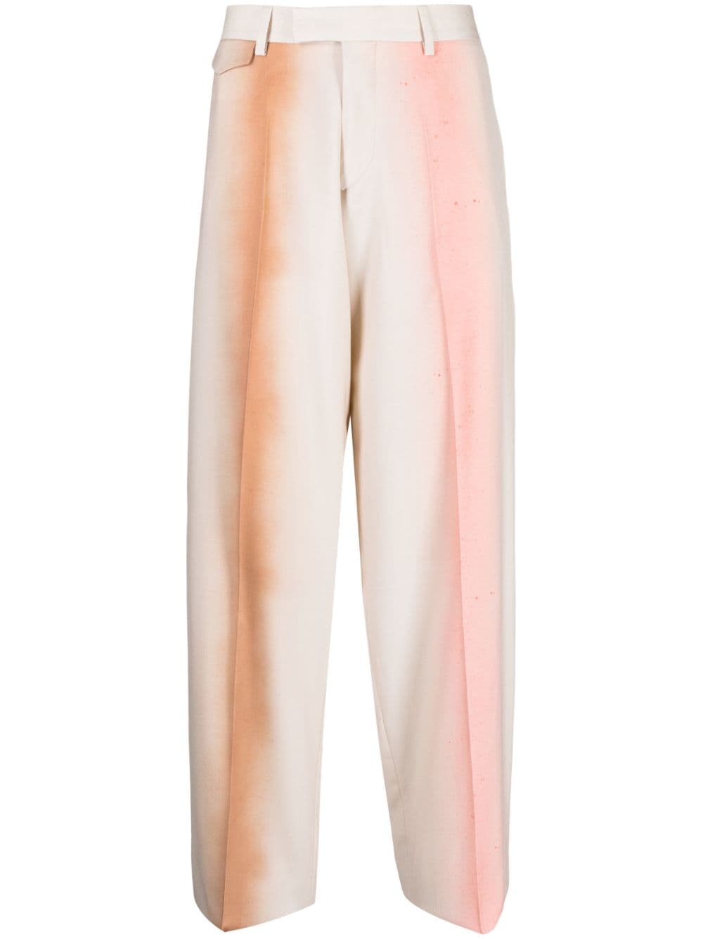 mid-rise wide-leg wool trousers from Paul Smith featuring beige, multicolour, wool, spray-paint effect, pressed crease, mid-rise, wide leg, belt loops, concealed front fastening, side flap pocket and rear flap pocket.