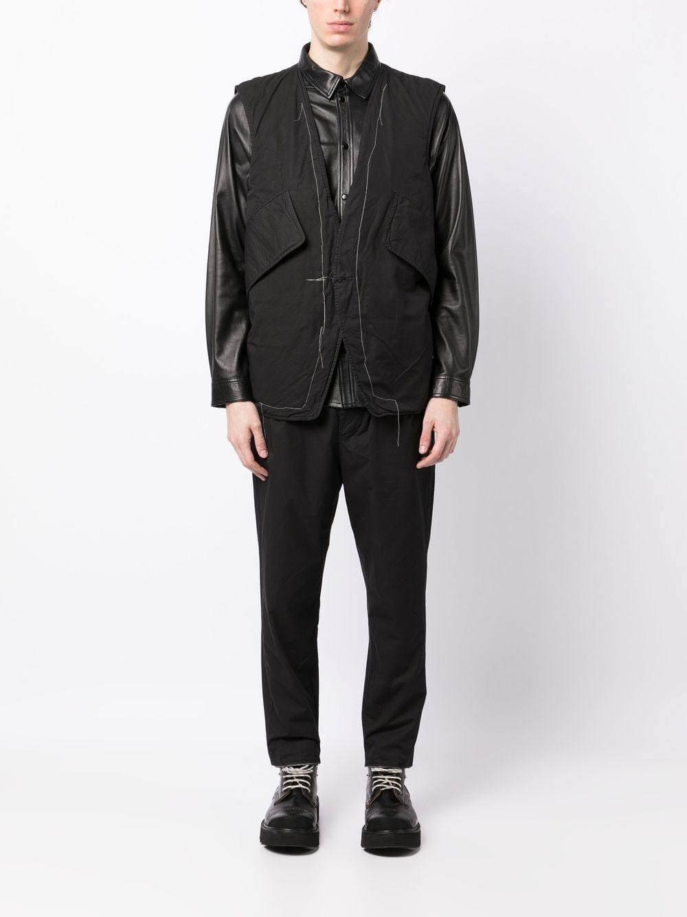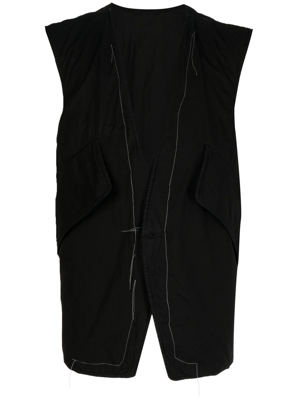 stitch-detail V-neck gilet from NICOLAS ANDREAS TARALIS featuring jet black, cotton, contrast stitching, V-neck, sleeveless, front button fastening, two front flap pockets and straight hem.