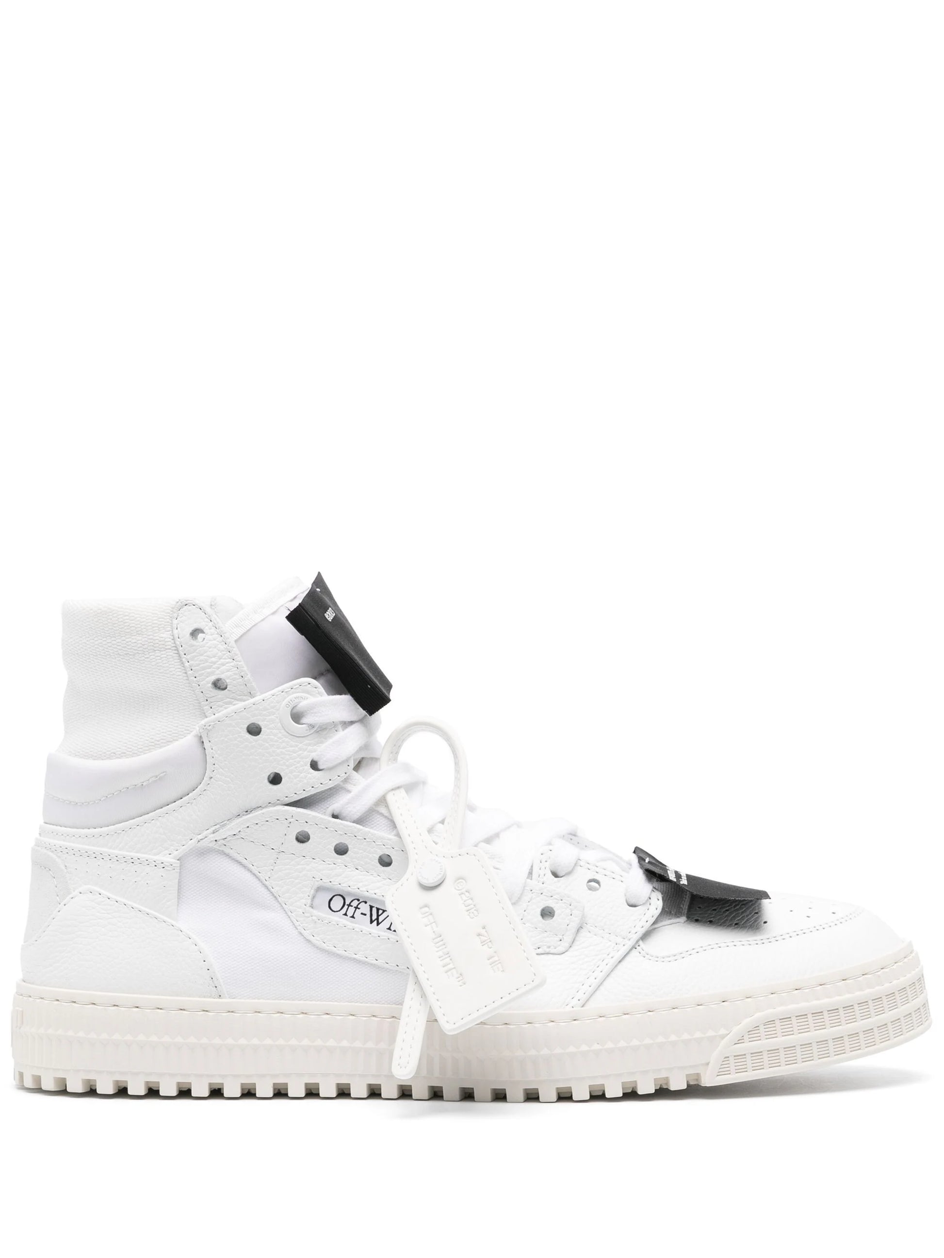 white/black calf leather panelled design round toe perforated toebox signature Zip Tie tag logo patch at the tongue embroidered logo to the side branded insole logo at the sole rubber sole front lace-up fastening