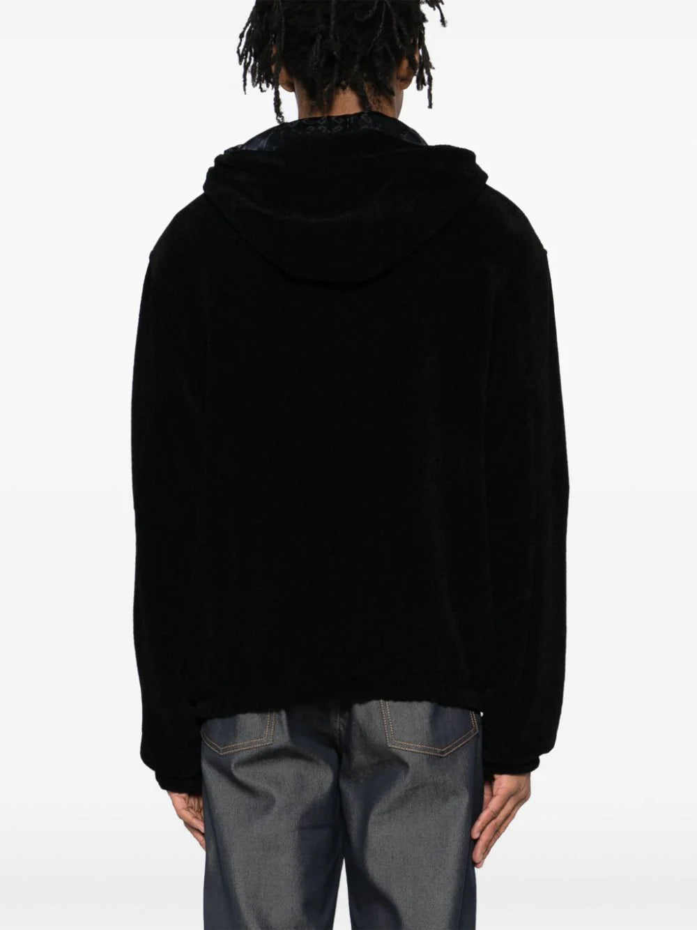 Introducing the 4G Reversible Hooded Jacket, a luxurious and versatile piece. Crafted from a black knitted construction, it features our signature 4G motif and silver-tone hardware. The slouchy drawstring hood and elasticated details offer a comfortable fit, while the reversible design allows for multiple styling options. Complete with functional pockets and a front zip fastening, this jacket effortlessly combines style and practicality.