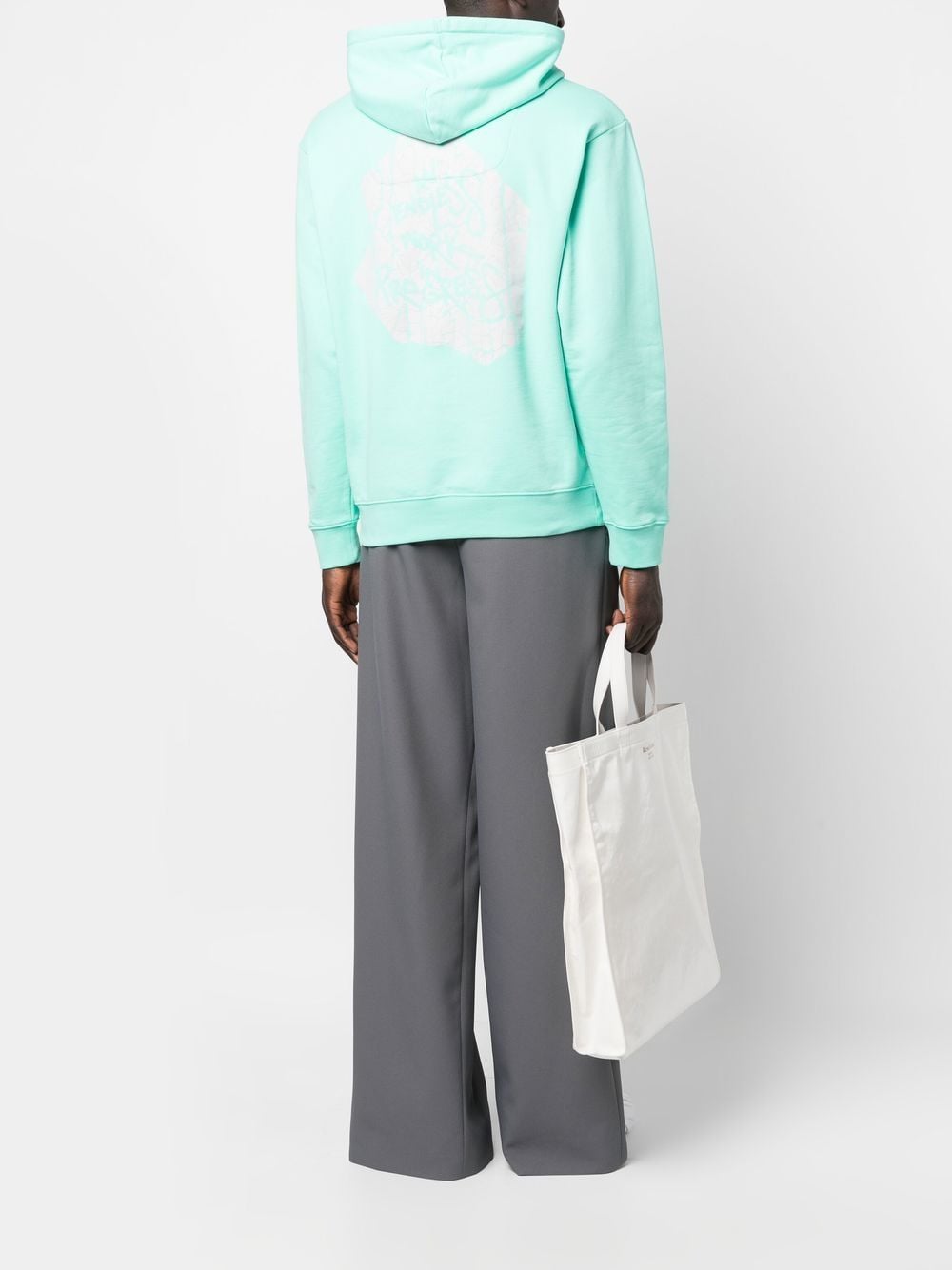abstract-print organic cotton hoodie from OBJECTS IV LIFE featuring mint green, organic cotton, graphic print to the front, graphic print to the rear, drawstring hood, front pouch pocket, long sleeves and straight hem.