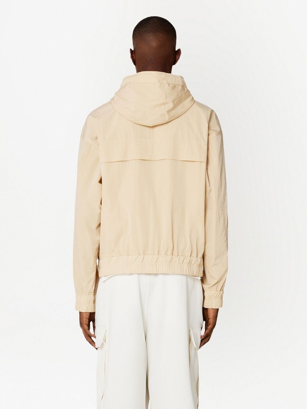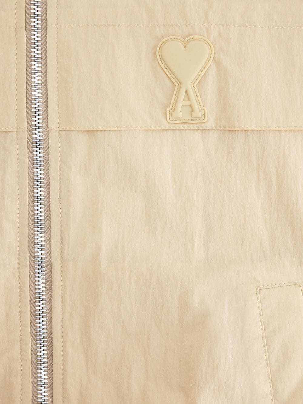 Ami de Coeur hooded jacket from AMI Paris featuring beige, signature Ami de Coeur monogram motif, drawstring hood, front zip fastening, two front welt pockets, long sleeves, elasticated trim and straight hem. When buying this unisex item, keep in mind that it is graded in standard men's sizing..