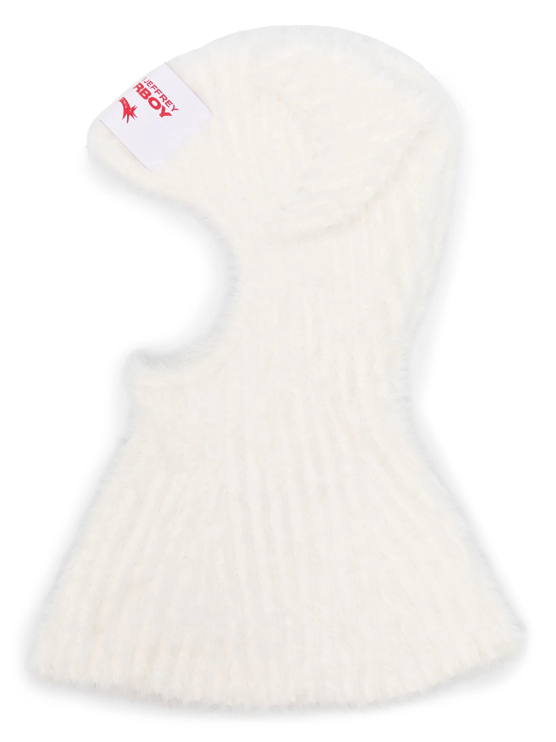 white ribbed knit brushed effect pop-up animal ears pullover design logo patch to the front face opening
