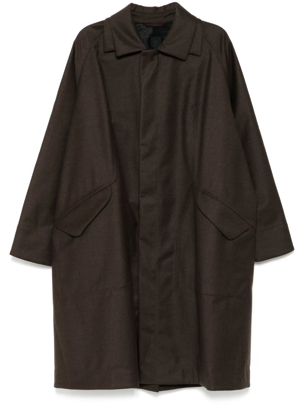 Constructed with a cedar brown concealed front press-stud and zip fastening, this Atlas Single-Breasted Coat boasts practicality and style. With two front flap pockets and press-stud fastening cuffs, this coat offers functionality, while the press-stud central rear vent adds a touch of sophistication.