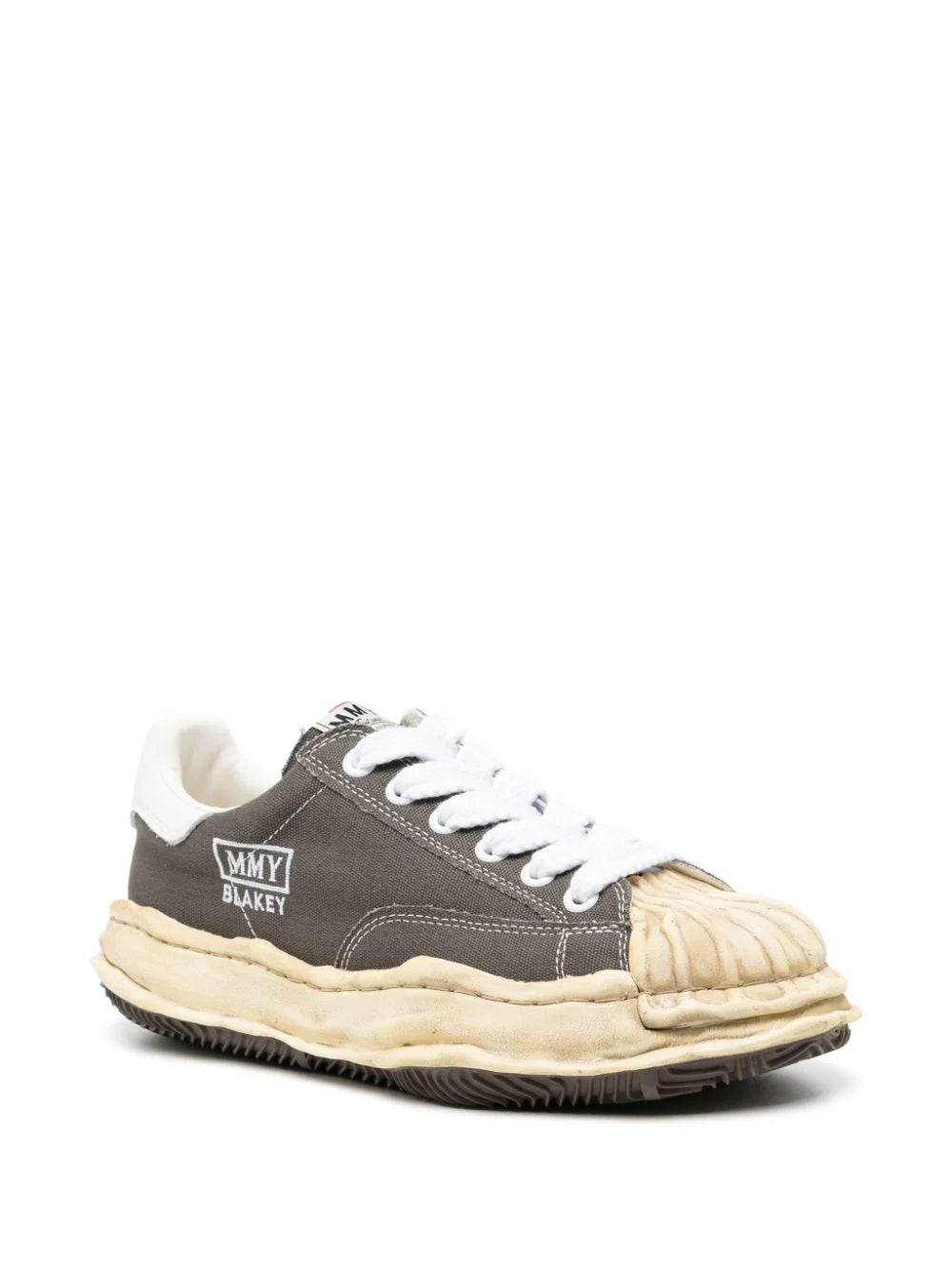 beluga grey cotton canvas contrasting branded heel counter embroidered logo to the side logo patch at the tongue front lace-up fastening round toe branded insole rubber sole