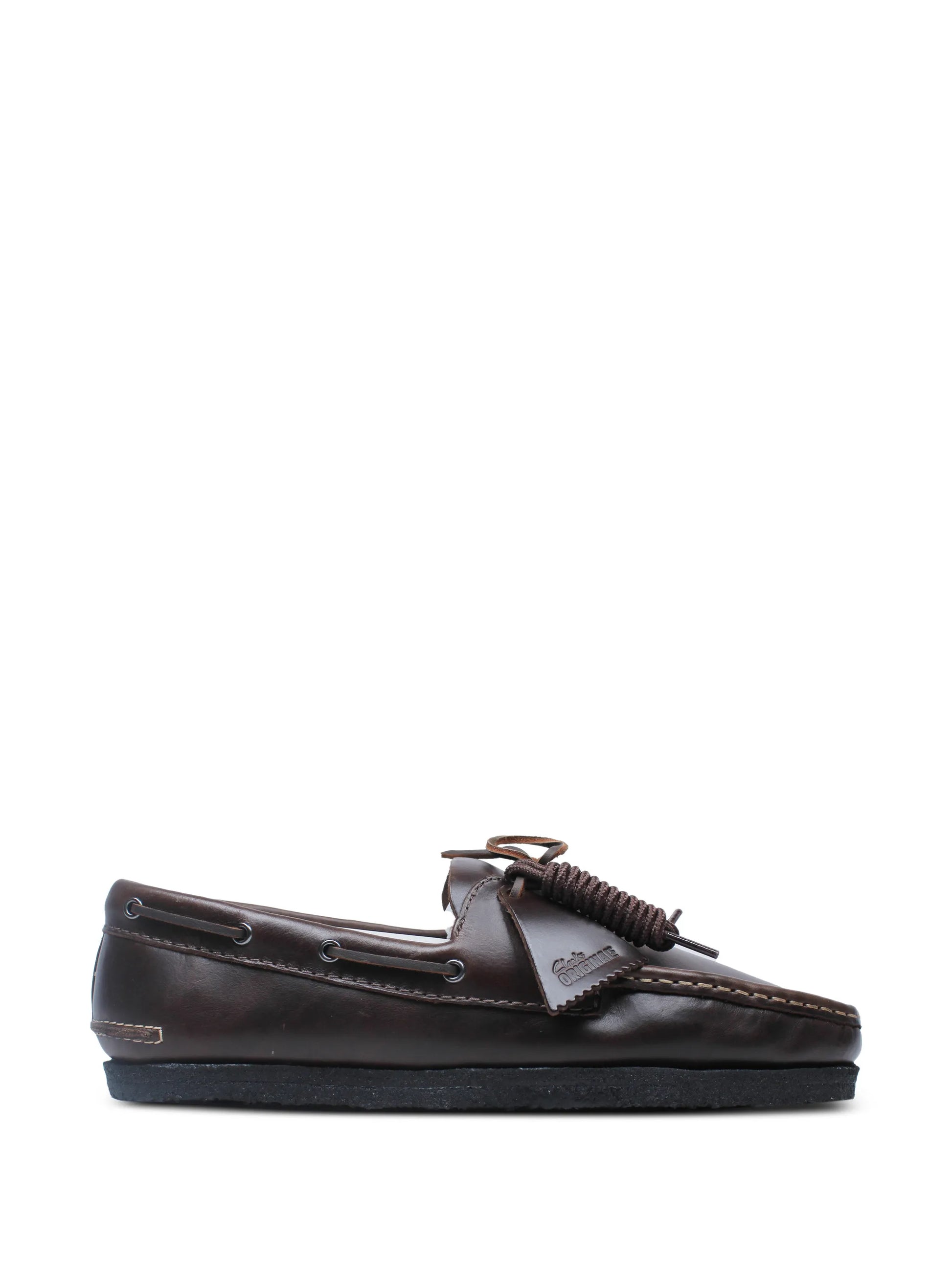 Crafted from premium brown leather, these boat shoes combine timeless nautical styling with refined construction. The lace-up fastening with metal eyelets ensures a secure, adjustable fit, while meticulous topstitching reinforces durability and adds visual sophistication. The crepe sole delivers exceptional comfort and grip, making these shoes equally suited to deck wear or casual everyday occasions. A versatile investment piece for the discerning wardrobe.