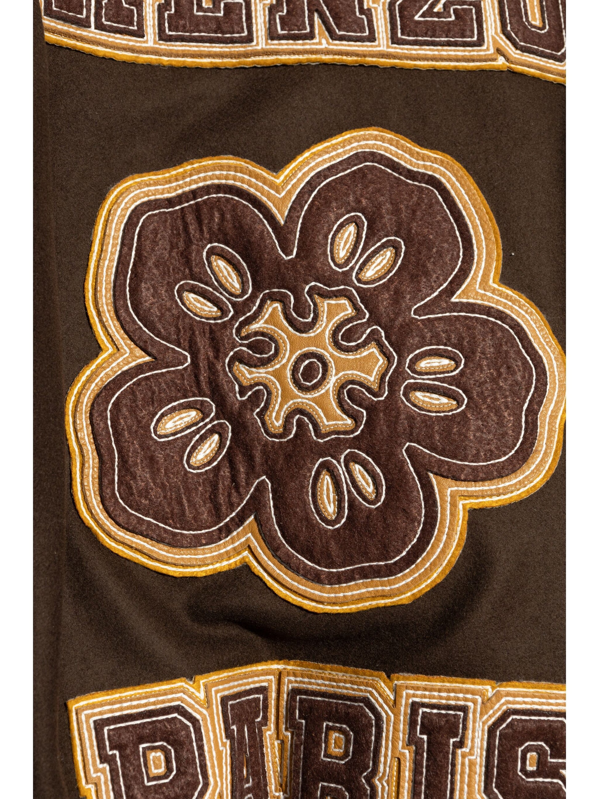 Expertly crafted from a camel brown wool blend and leather, the Boke Flower Jacket features a signature motif, ribbed cuffs and hem, and convenient slip pockets. With a front press-stud fastening and number patch on the sleeve, this jacket is both stylish and practical.