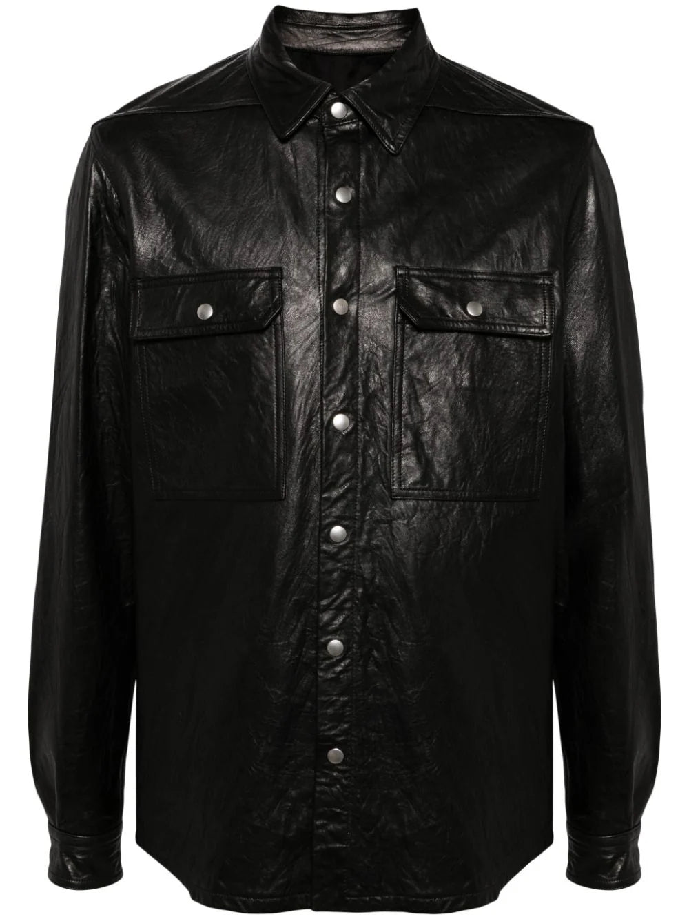 black lambskin front press-stud fastening classic collar two button-fastening chest pockets long sleeves buttoned cuffs high-low hem cotton lining internal zip-fastening pockets