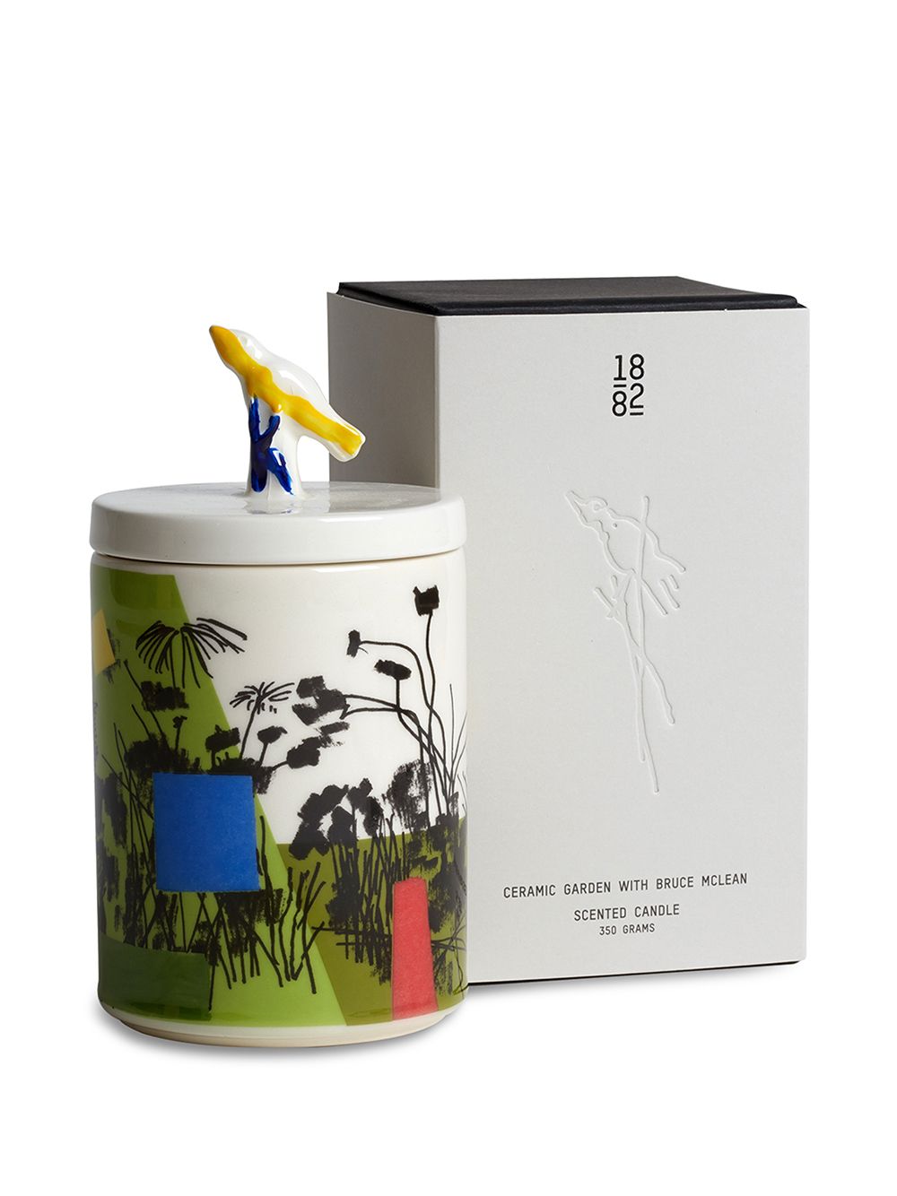 White/multicolour earthernware Ceramic Garden scented candle (350g) from 1882 Ltd featuring painterly print, handcrafted effect and single cotton wick.