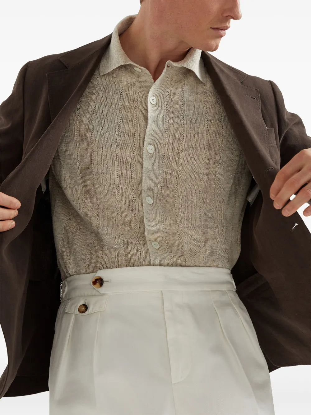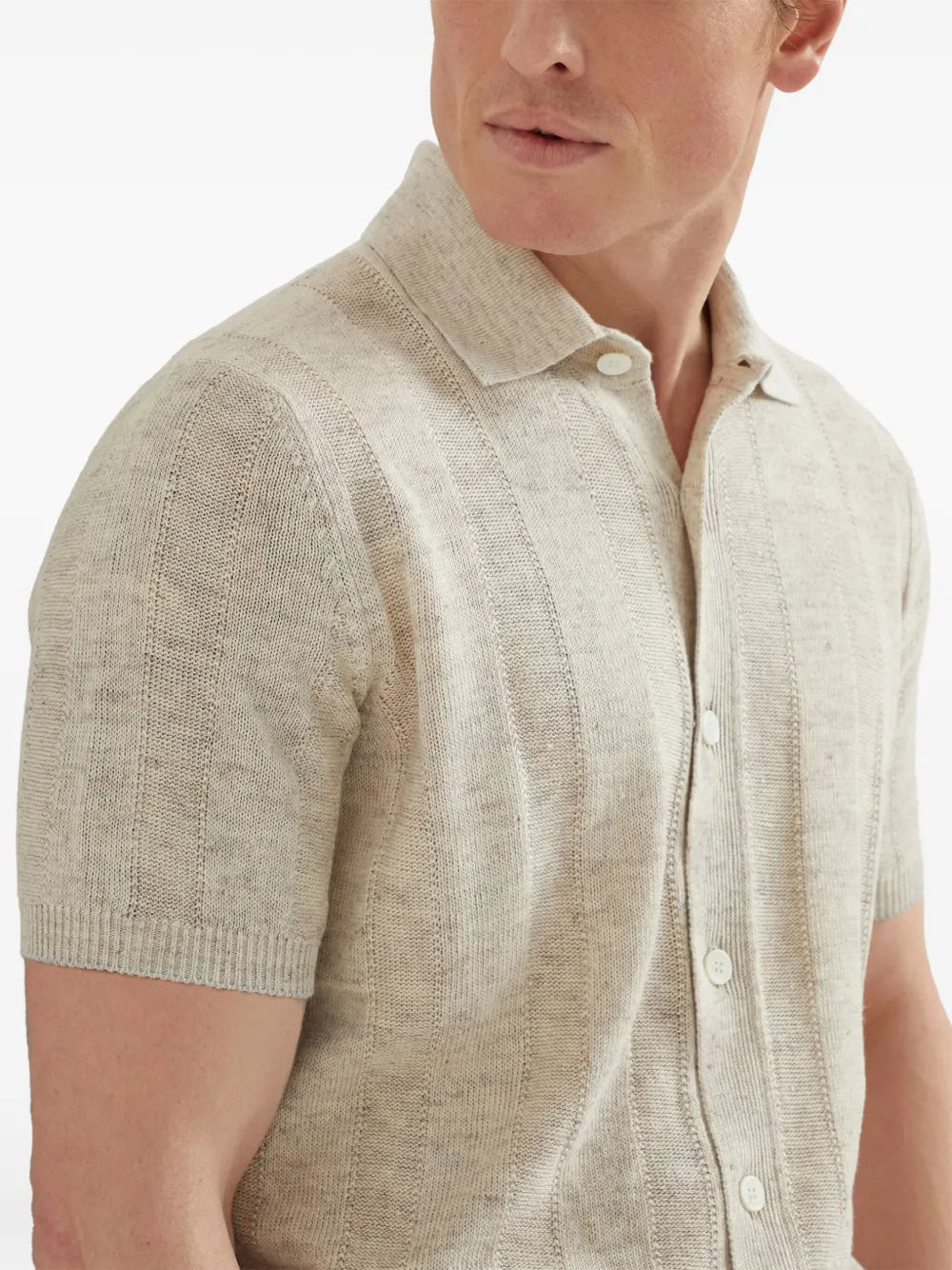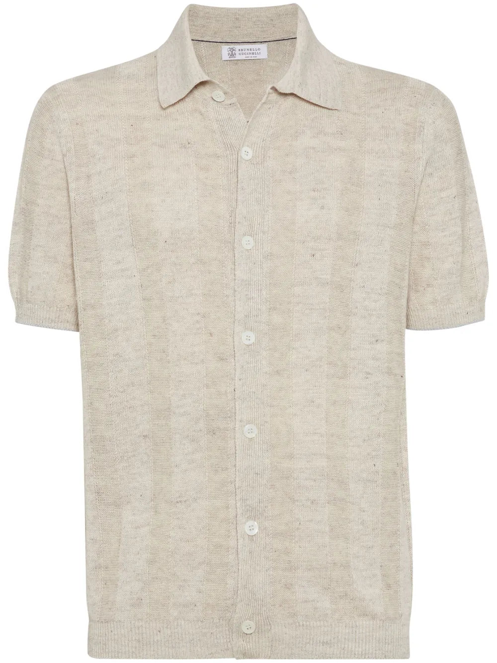 The Classic Collar Shirt is the perfect addition to any wardrobe. Made with a button fastening and short sleeves, this shirt provides a timeless and versatile look. Its beige color allows for easy pairing with any outfit. Stay comfortable and stylish with this classic shirt.