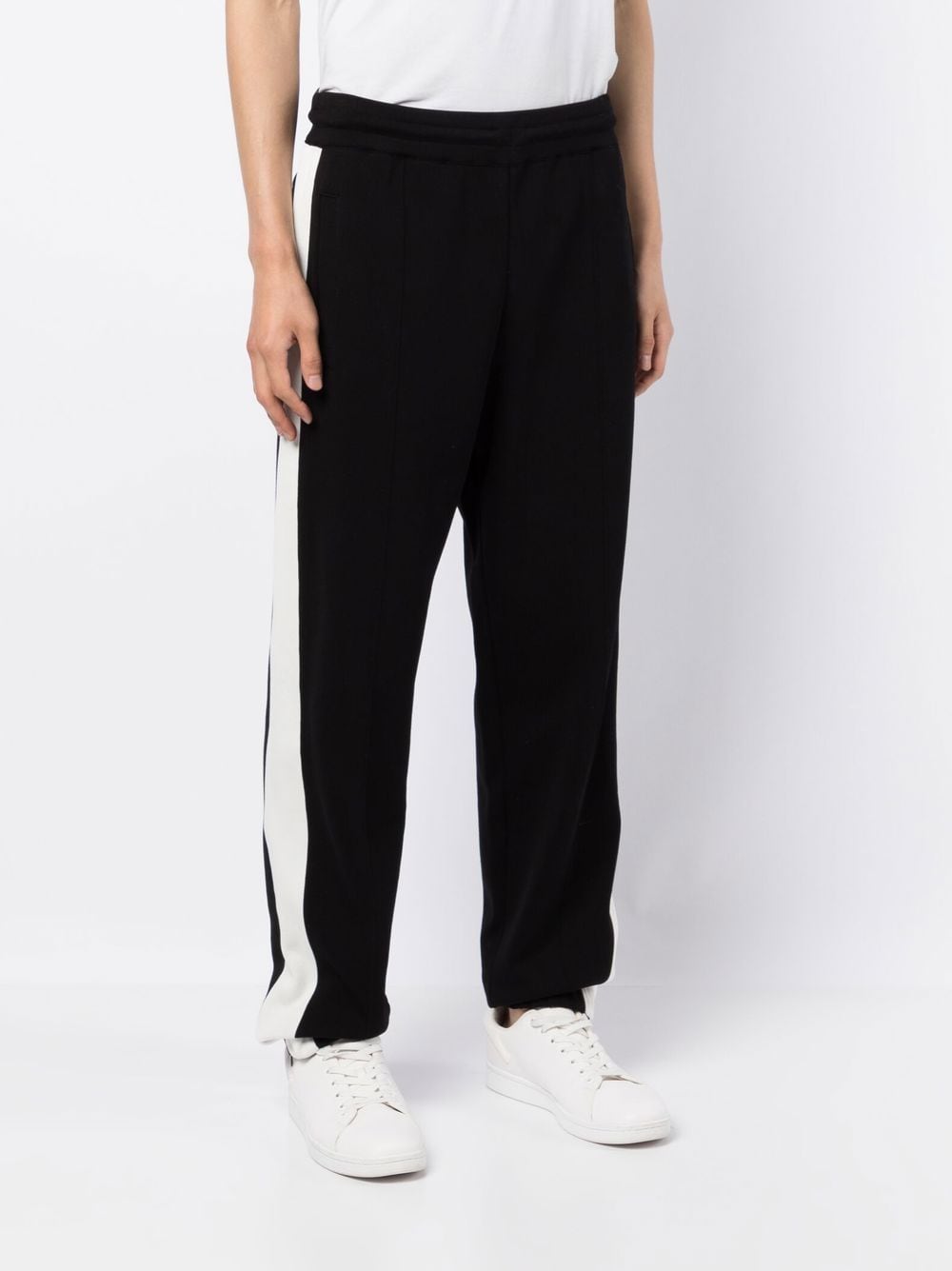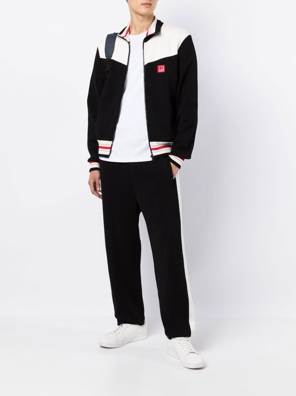 contarsting side-stripe detail trousers from DUNHILL featuring side stripe detailing, logo patch to the rear, elasticated waistband, two side inset pockets, rear welt pocket, jet black/white and cotton.