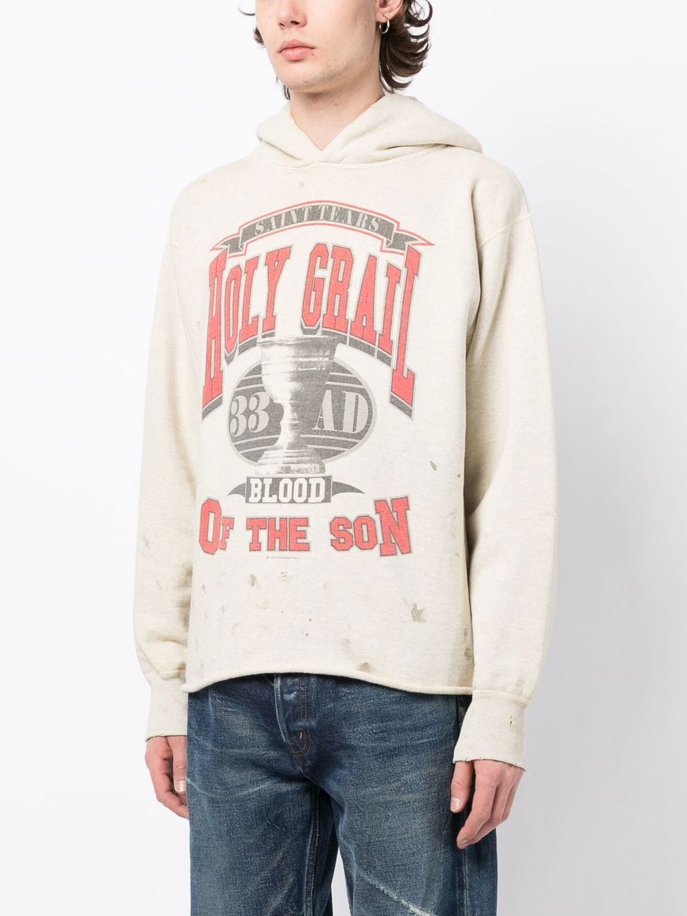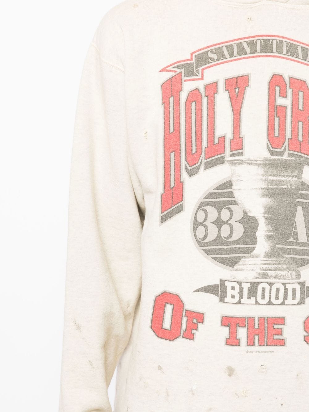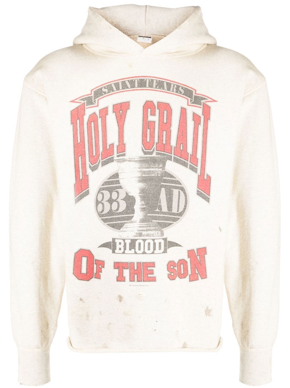 cotton graphic print hoodie from SAINT MXXXXXX featuring light grey, light beige, light red, cotton, graphic print to the front, graphic print to the rear, paint splatter detail, classic hood, long sleeves and straight hem.