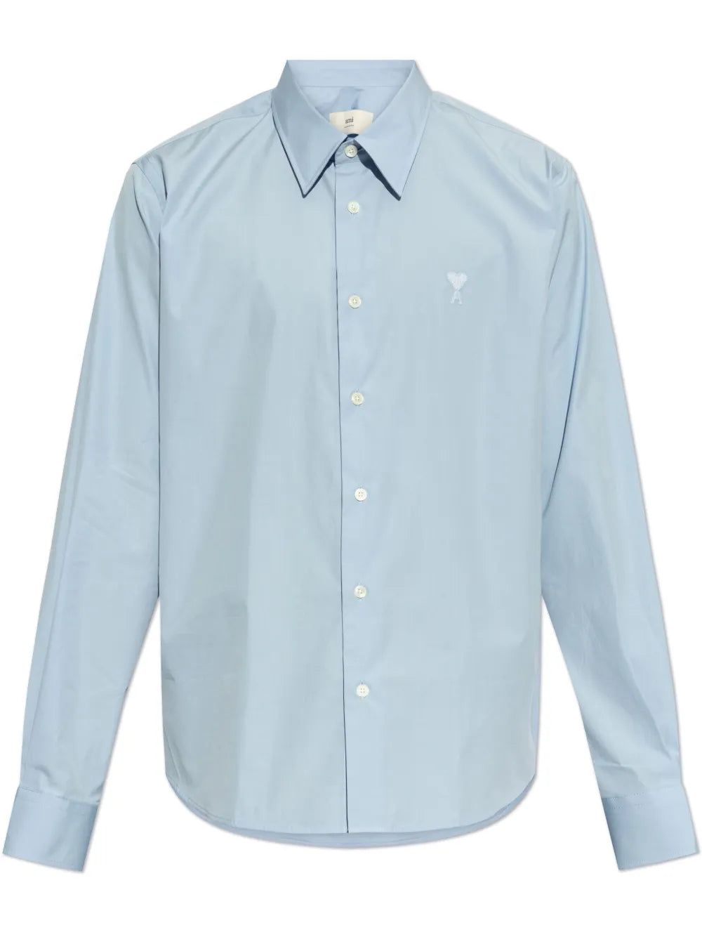 This light blue cotton shirt features a front button fastening and buttoned cuffs, as well as the signature Ami de Coeur monogram motif. With a curved hem for a stylish and comfortable fit, this shirt is perfect for any professional or casual occasion.