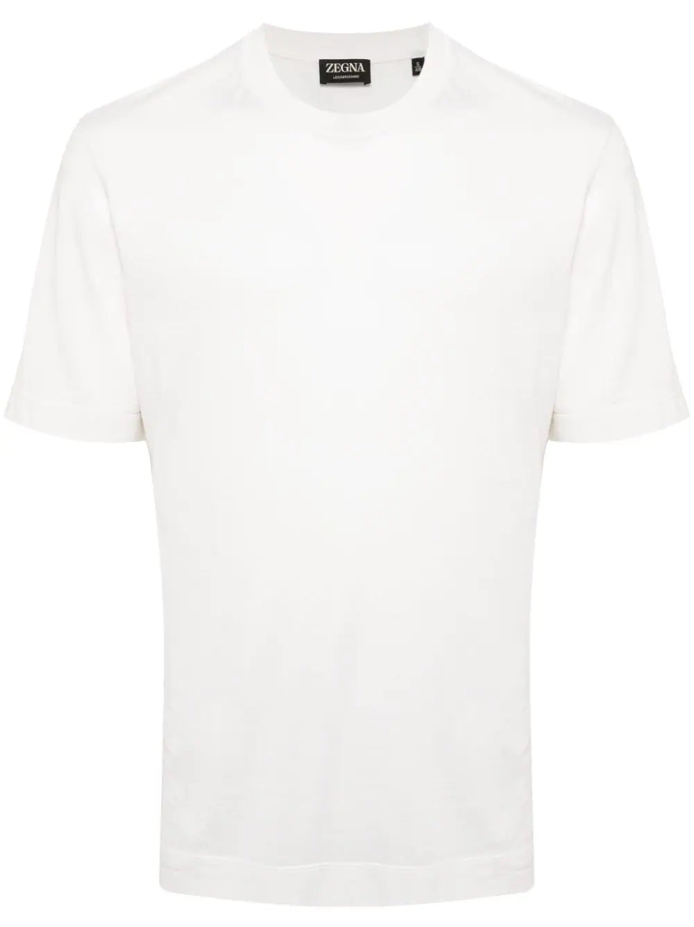 white silk-cotton blend lightweight jersey crew neck short sleeves straight hem