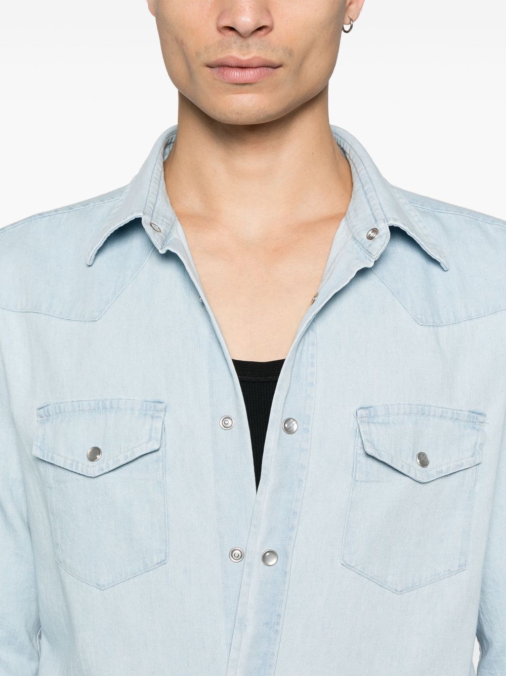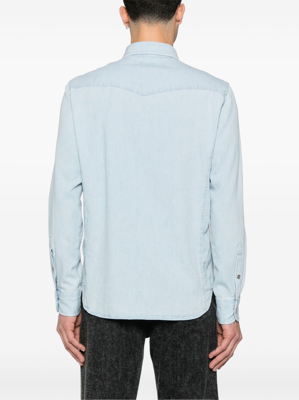 Introducing our light blue Denim Shirt, featuring convenient front press-stud fastening and cuffs, two chest flap pockets and a stylish curved hem. Stay comfortable and on-trend with this versatile addition to your wardrobe.