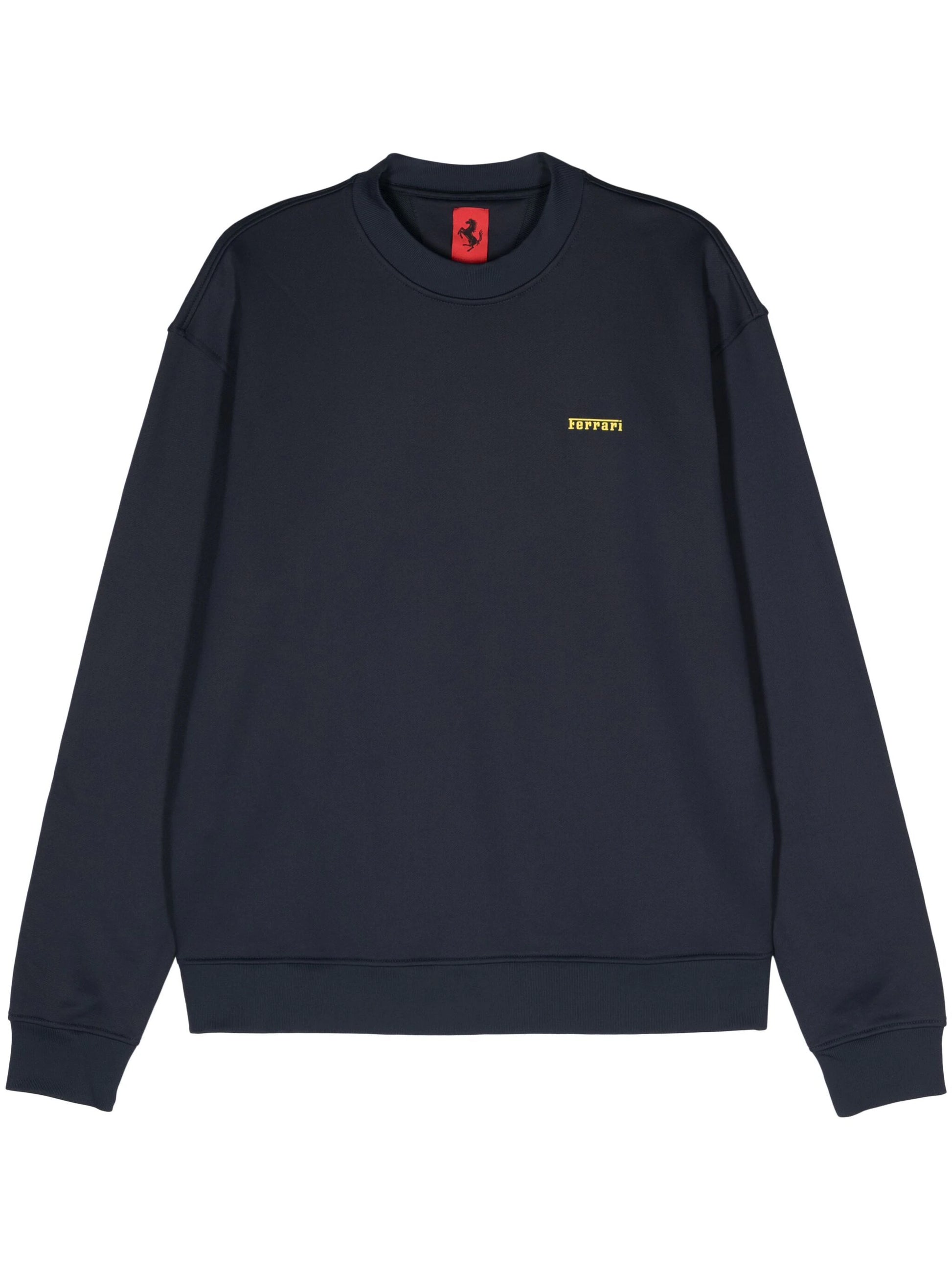navy blue jersey texture rubberised logo detail ribbed trim crew neck drop shoulder long sleeves straight hem
