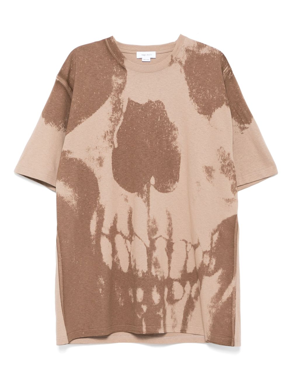 Look stylish and edgy with our Exploded Skull Round Neck T-Shirt. Made with comfortable brown cotton, this shirt features a logo print on the back, short sleeves, and a straight hem for a modern touch. Rock this shirt and stand out in any crowd.