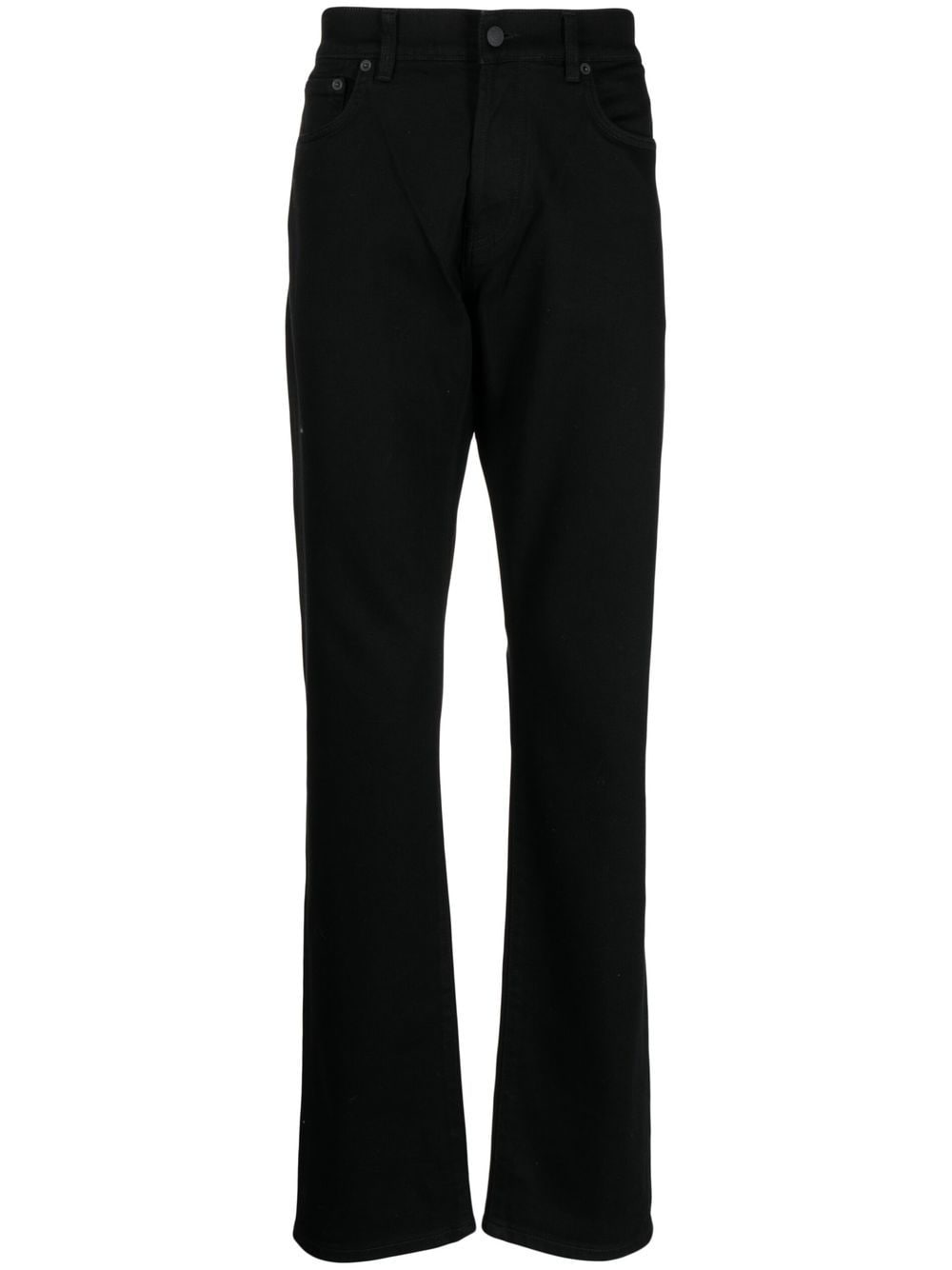 five-pocket straight-leg trousers from DUNHILL featuring belt loops, front button and zip fastening, classic five pockets, straight leg, black and stretch-cotton.