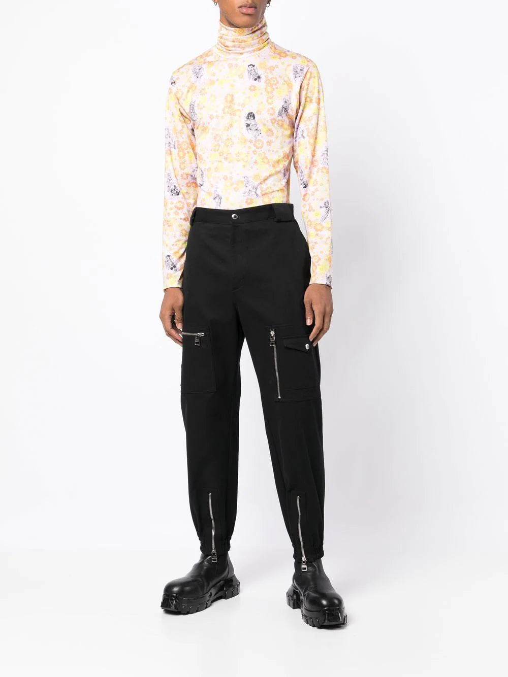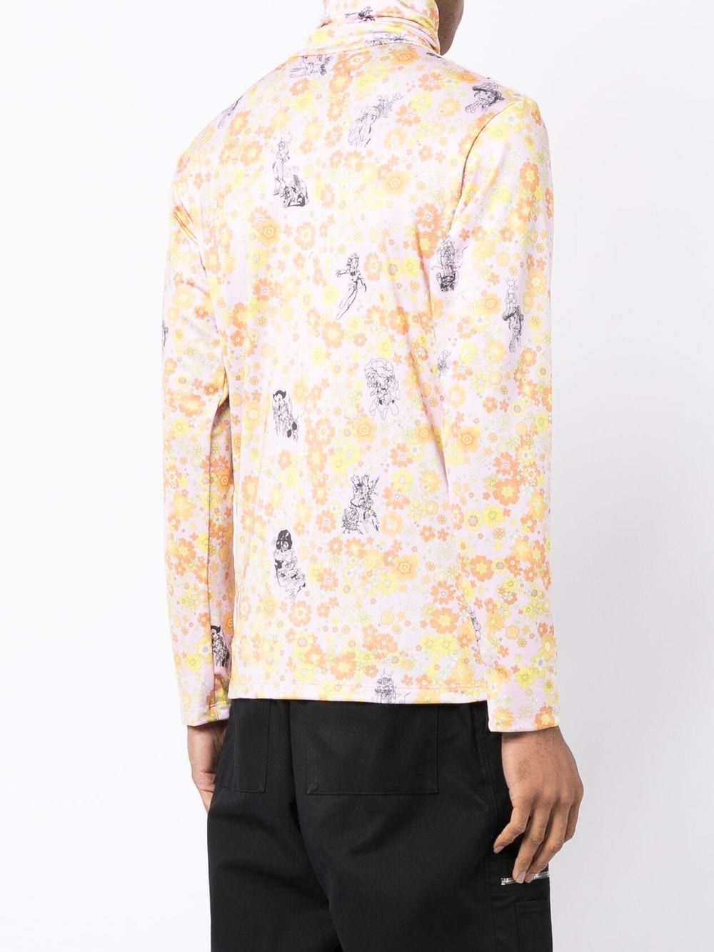floral motif print high neck top from Liberal Youth Ministry featuring light orange, butter yellow, light pink, black, stretch-design, all-over floral print, motif print, high neck, long sleeves and straight hem.