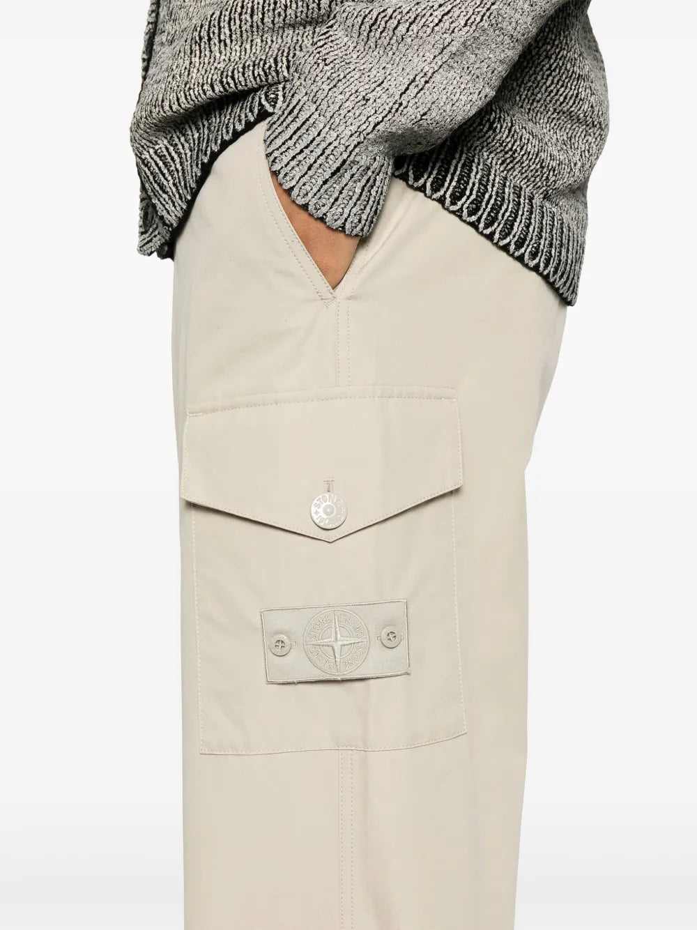 These Ghost Trousers feature a beige concealed fly and button fastening, along with two side slit and cargo pockets, and two rear welt pockets for convenient storage. Made with high-quality craftsmanship, these trousers provide both style and functionality for any occasion.