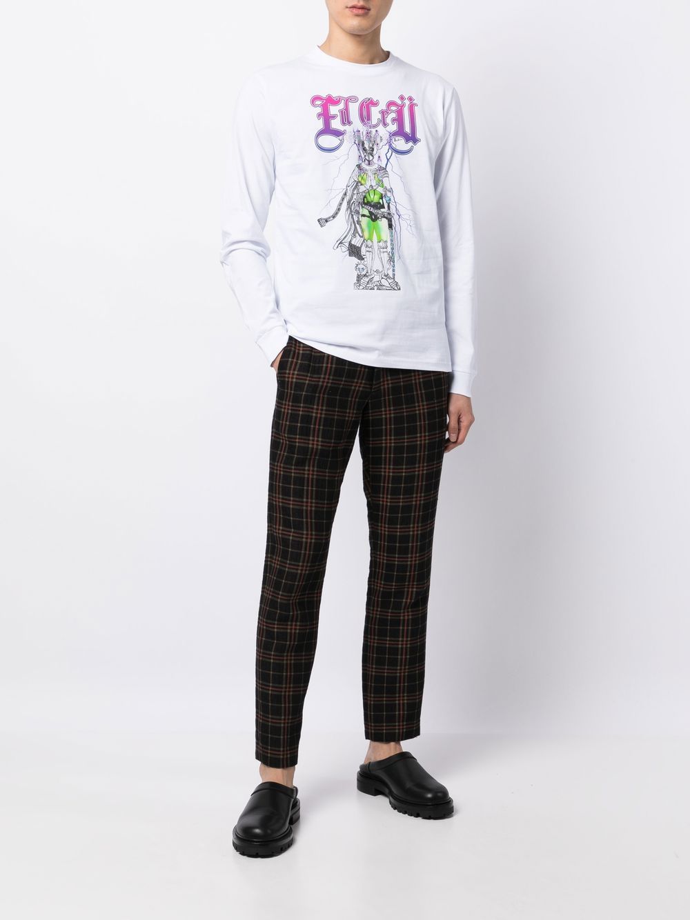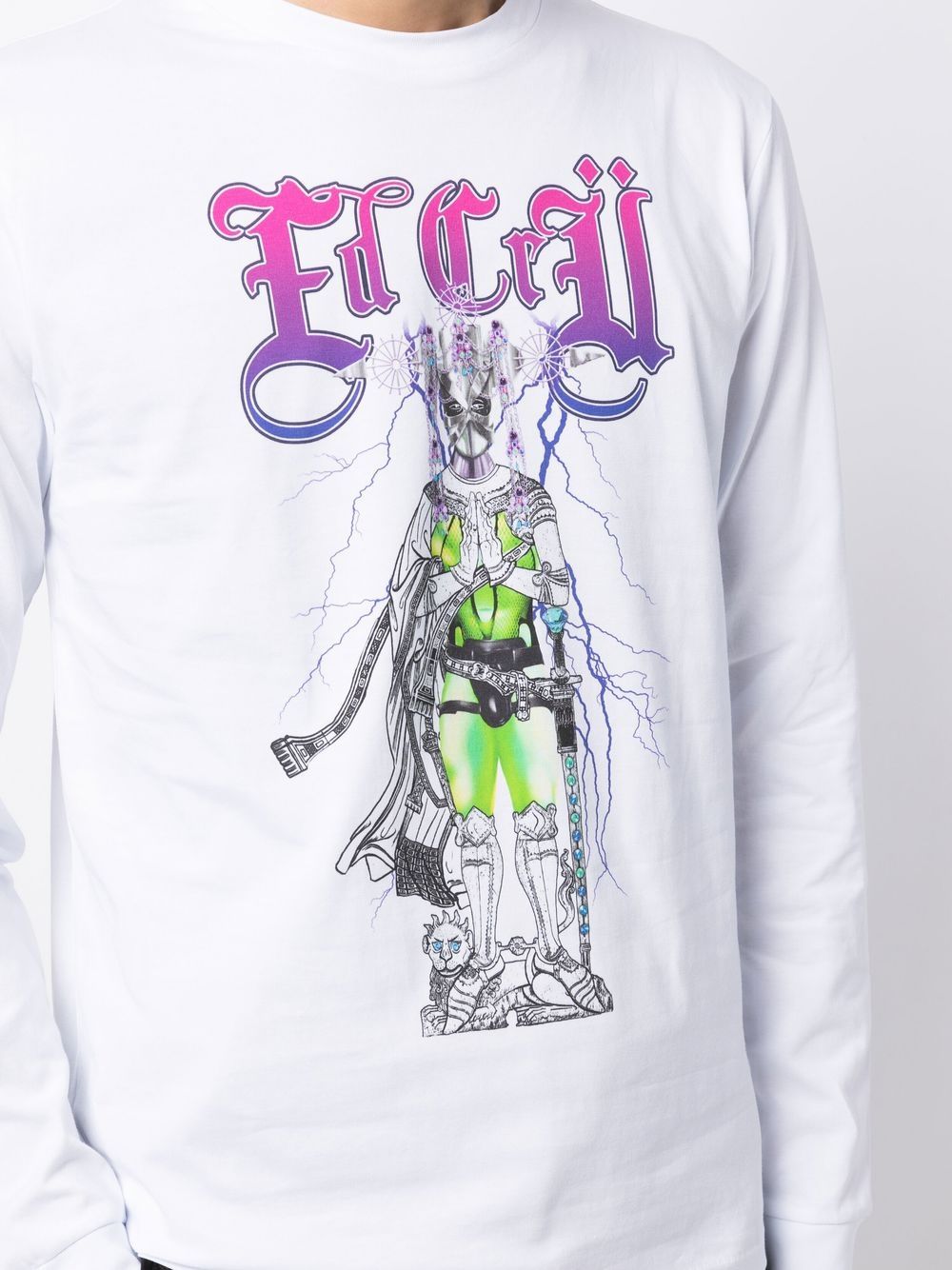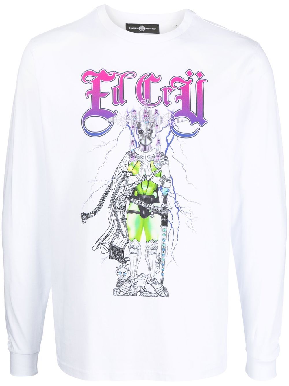 graphic-print cotton T-shirt from EDWARD CRUTCHLEY featuring white, cotton, graphic print to the front, round neck, long sleeves and straight hem.