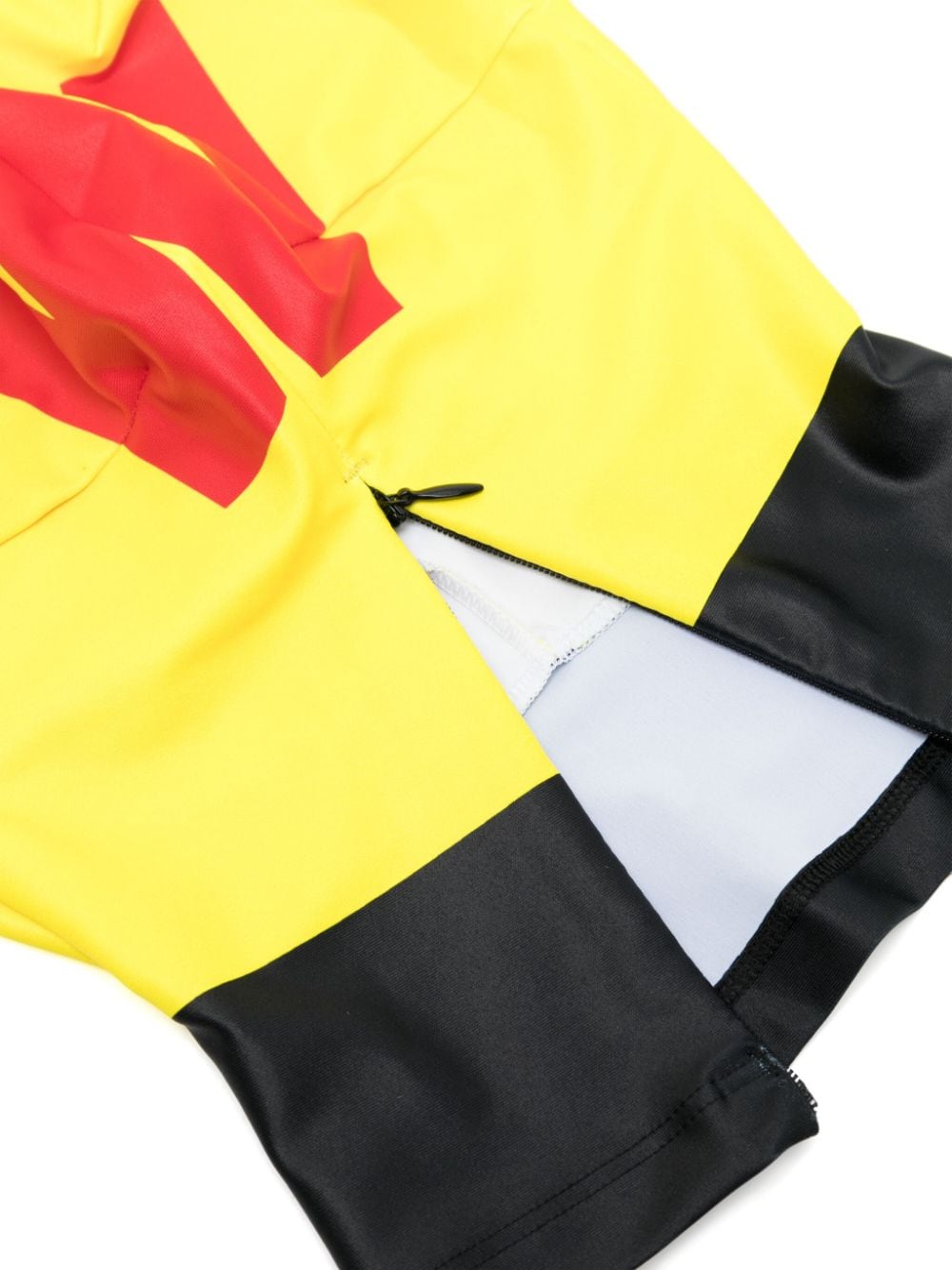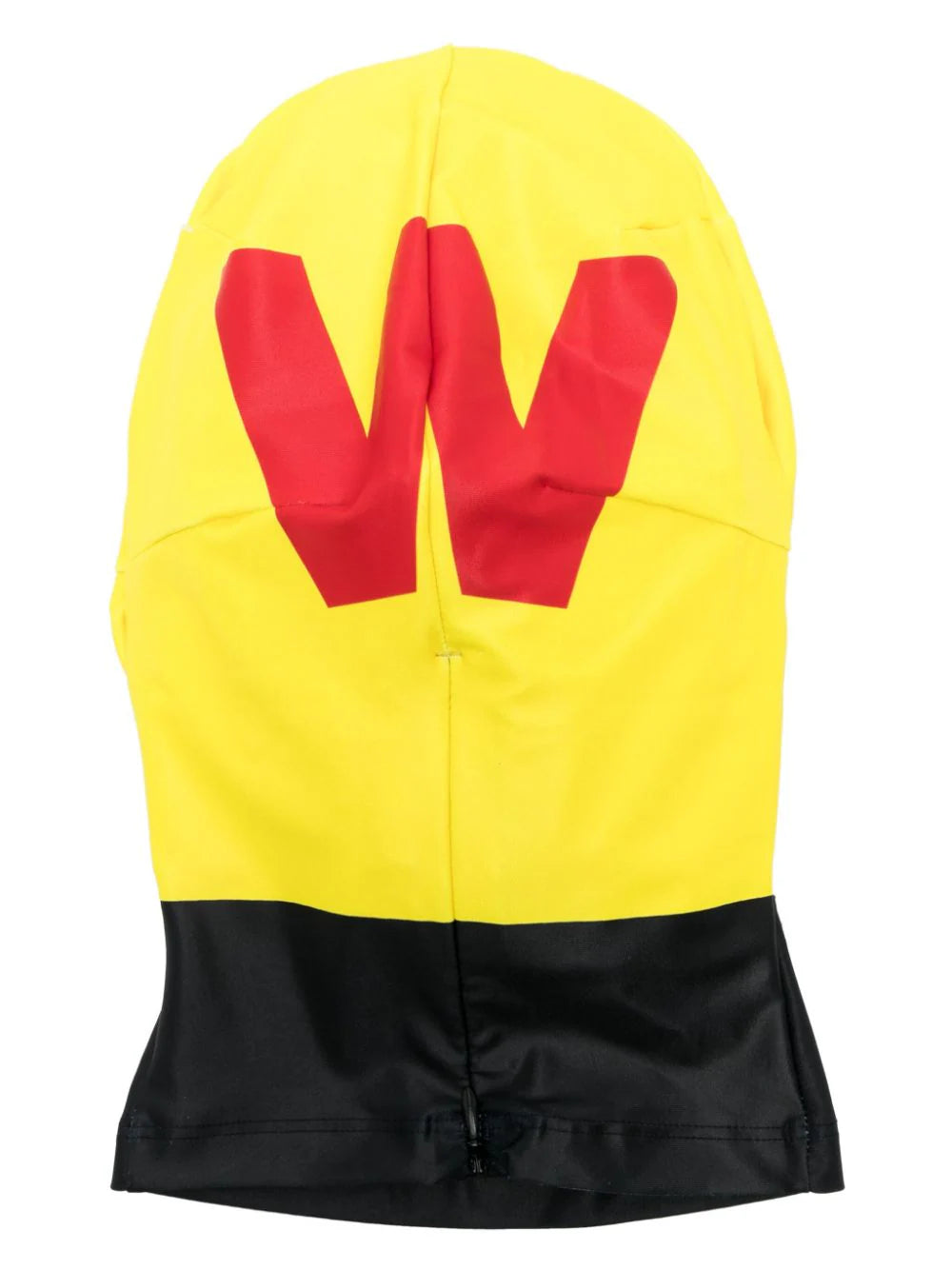 yellow black red stretch-design all-over graphic print eye openings rear zip fastening