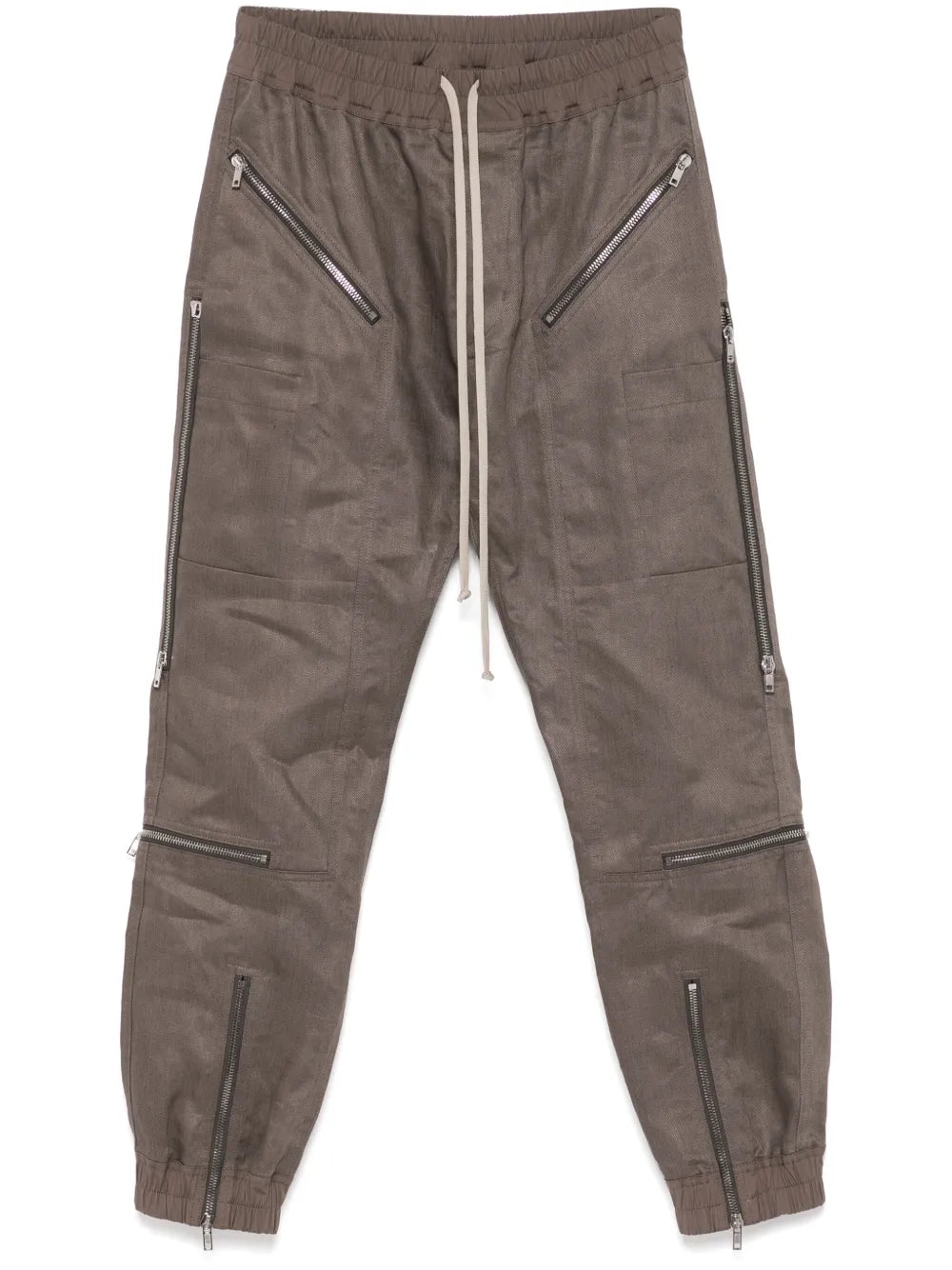 Expertly crafted with a rust brown elasticated drawstring waistband and elasticated ankles, these Headon Trousers offer both style and comfort. The multiple zip-fastening pockets add practicality, while the relaxed fit flatters all body types. Ideal for any occasion, from a night out to a casual day at work.