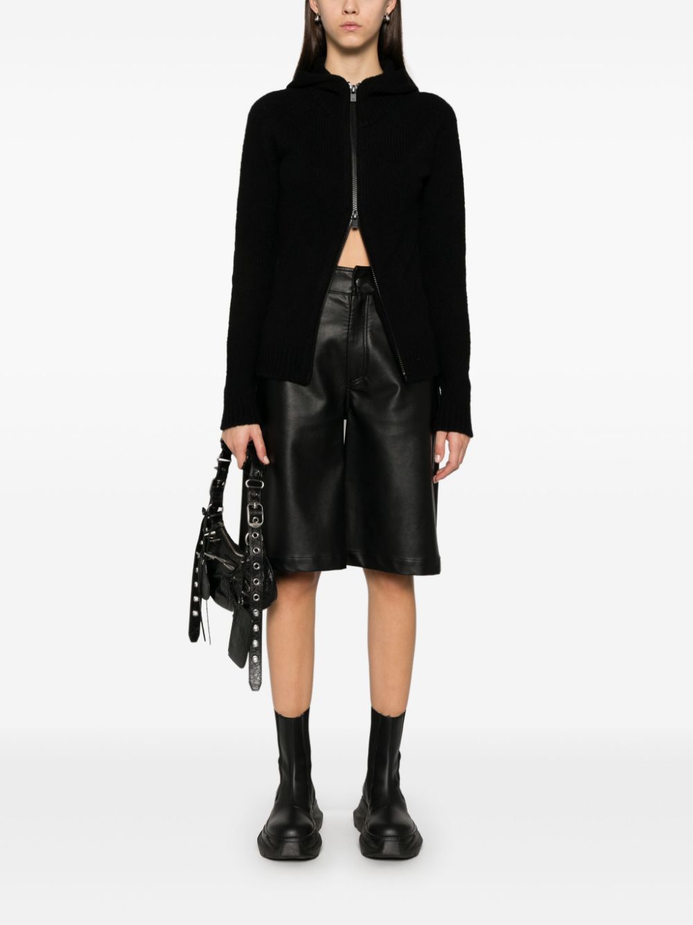 Crafted from a black merino wool blend, the Inviola Hoodie boasts a classic hood, long raglan sleeves, and a ribbed cuffs and hem for added comfort. Its front two-way zip fastening allows for easy on and off, while the straight hem provides a flattering and versatile fit. Stay warm and stylish with this expertly designed piece.