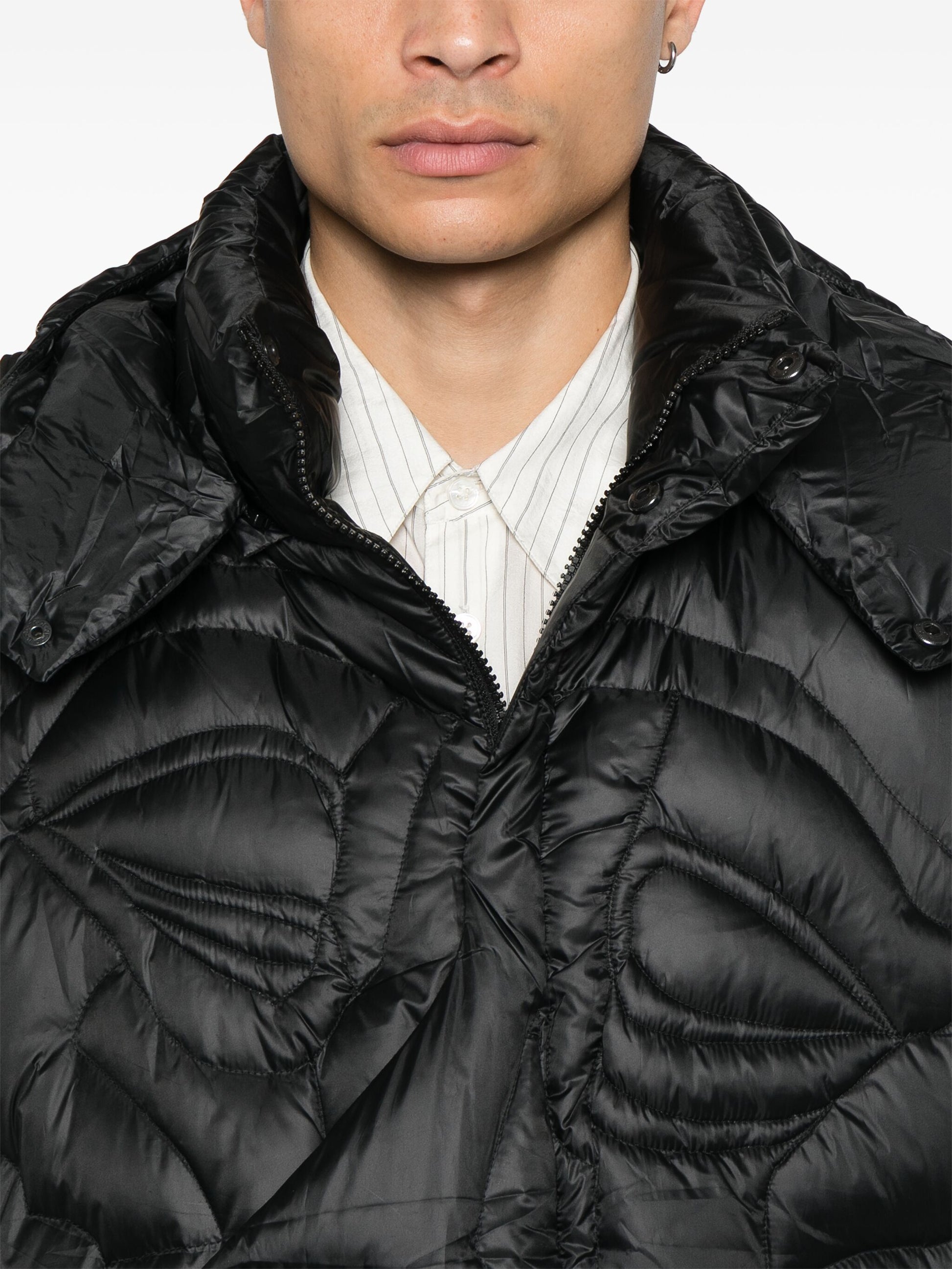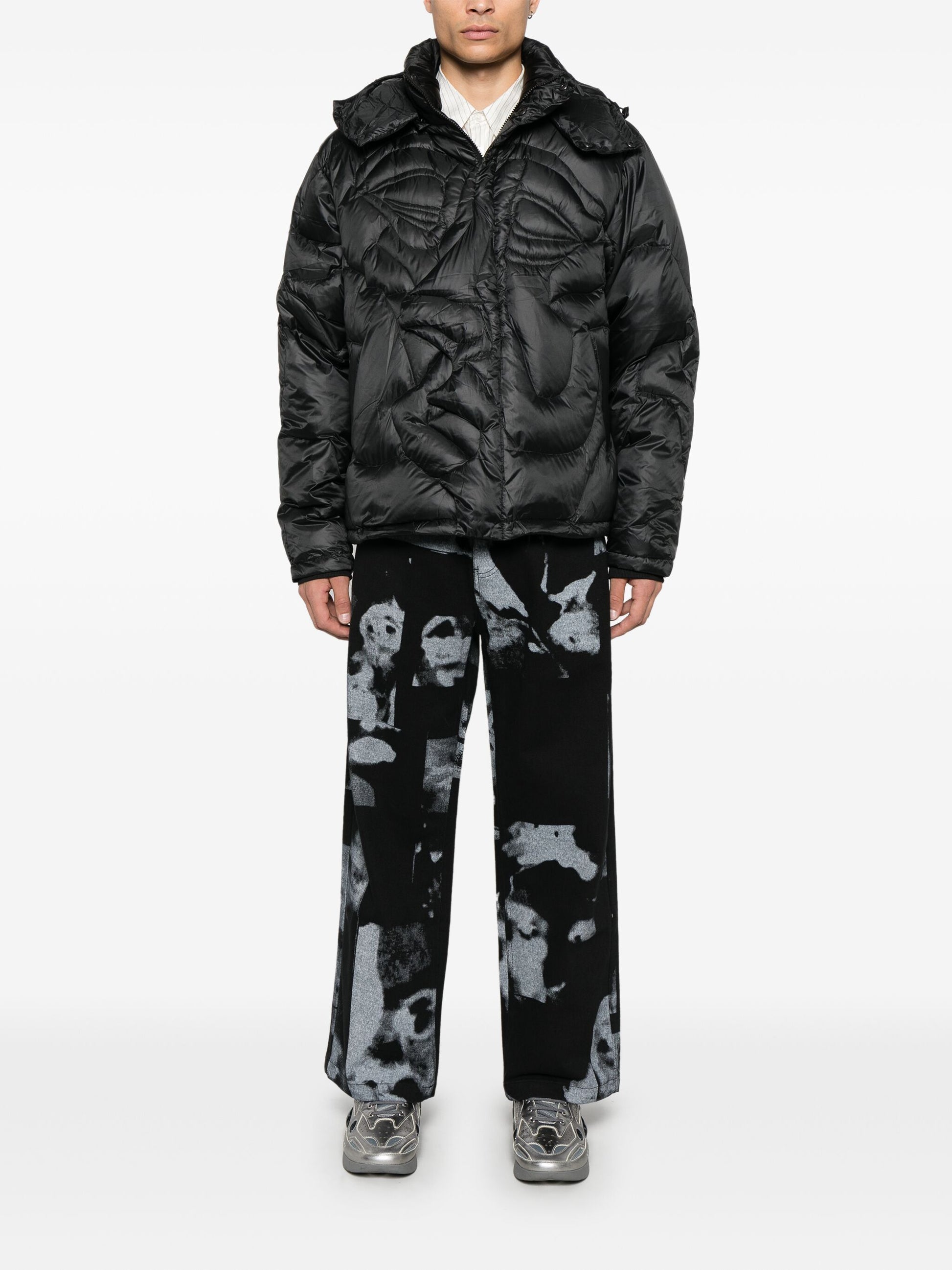 The Kissing Jacket features a sleek black design with a zip fastening and press-stud closure for added security. The padded design ensures warmth and comfort while the zip-fastening pocket provides convenient storage. Perfect for staying stylish and protected in colder weather.