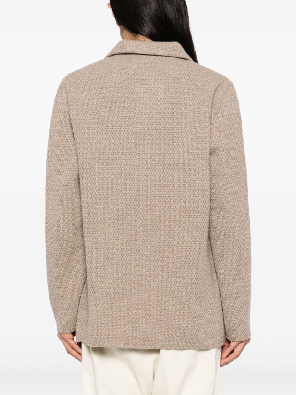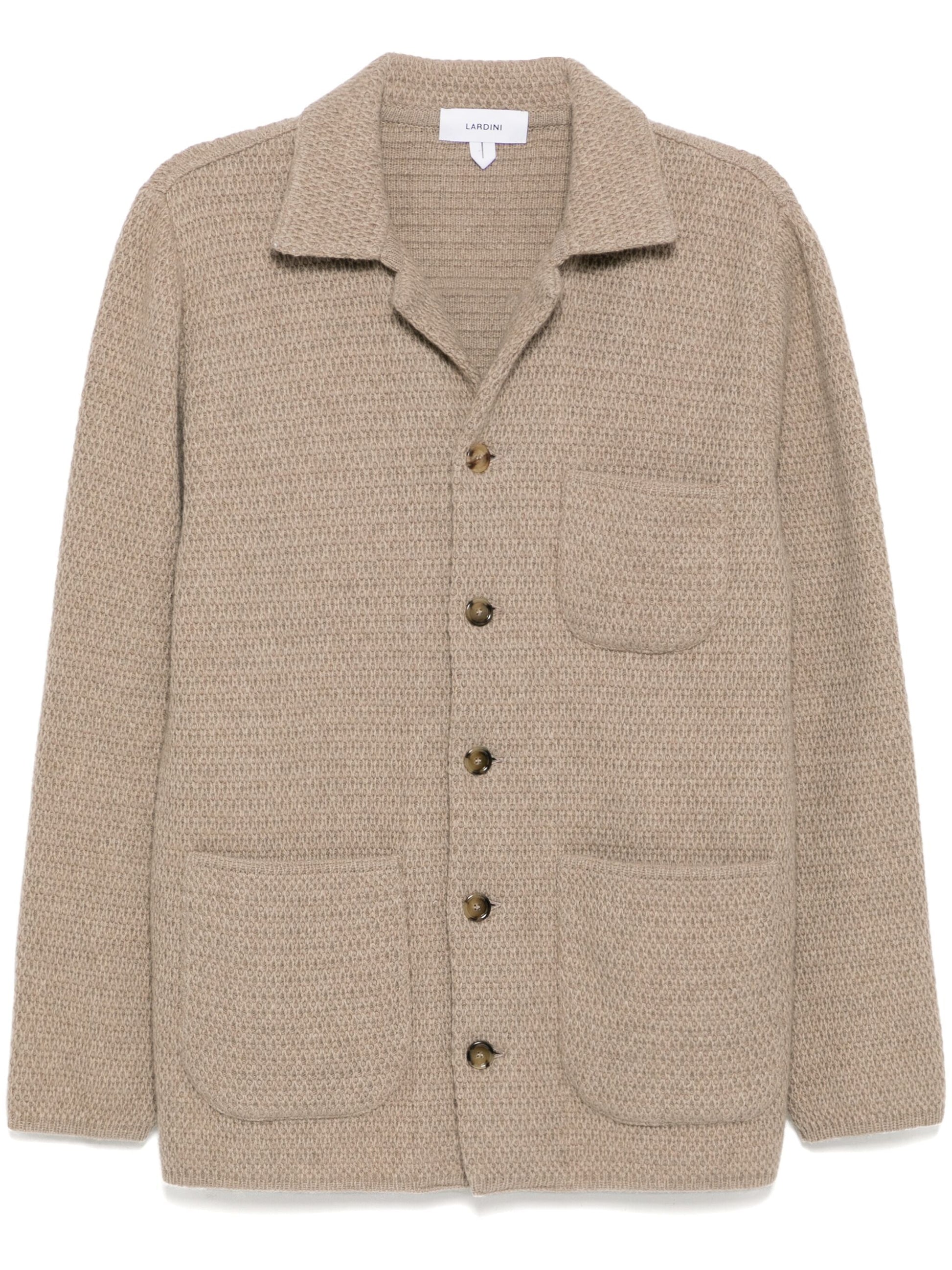 This knitted cashmere jacket is not only stylish, but also eco-friendly. Made with sustainable materials, it features a front button fastening, camp collar, and ribbed cuffs and hem for a comfortable fit. With three front patch pockets, you'll have plenty of space to carry your essentials. Look and feel good in this sustainable jacket.