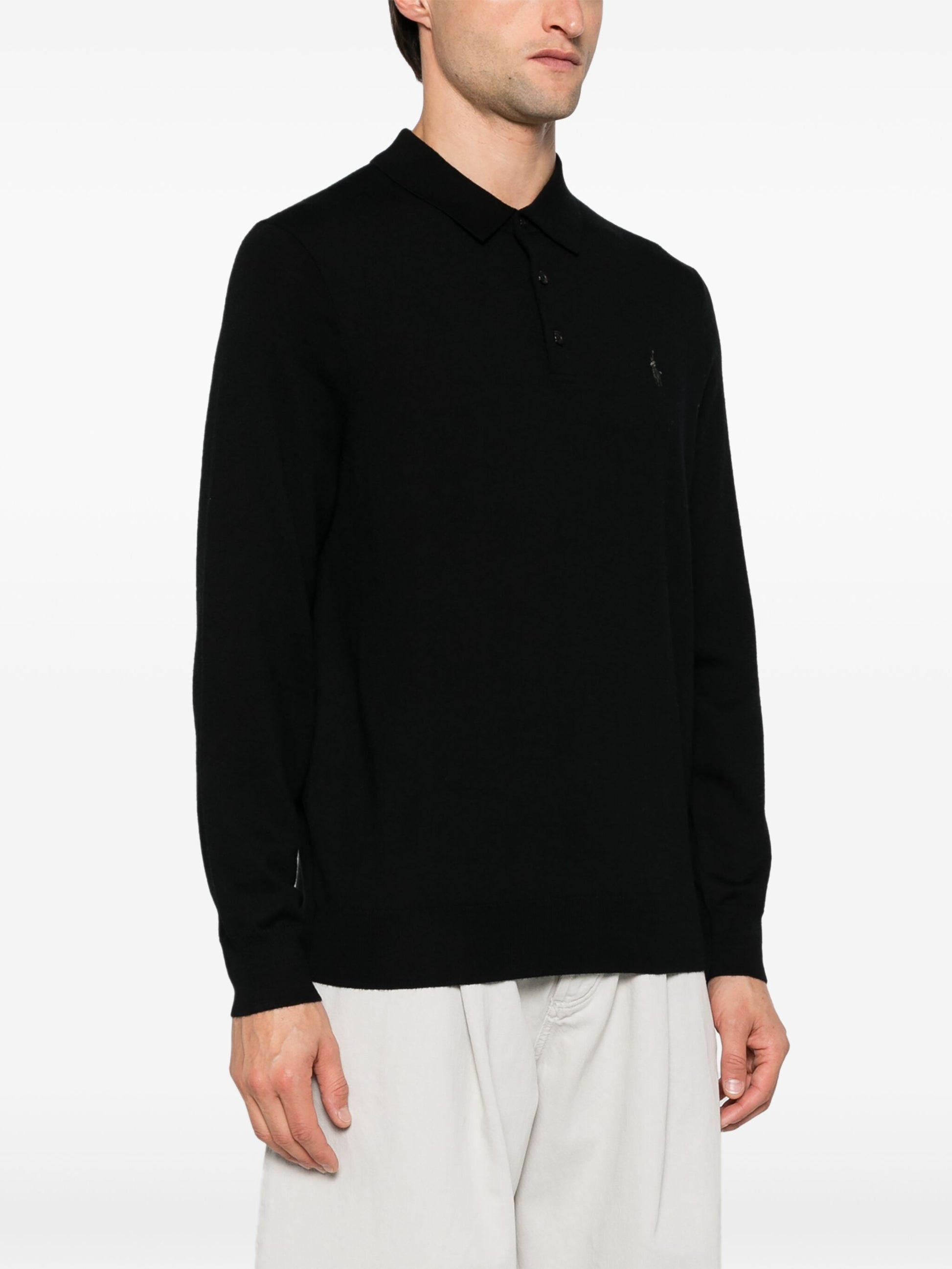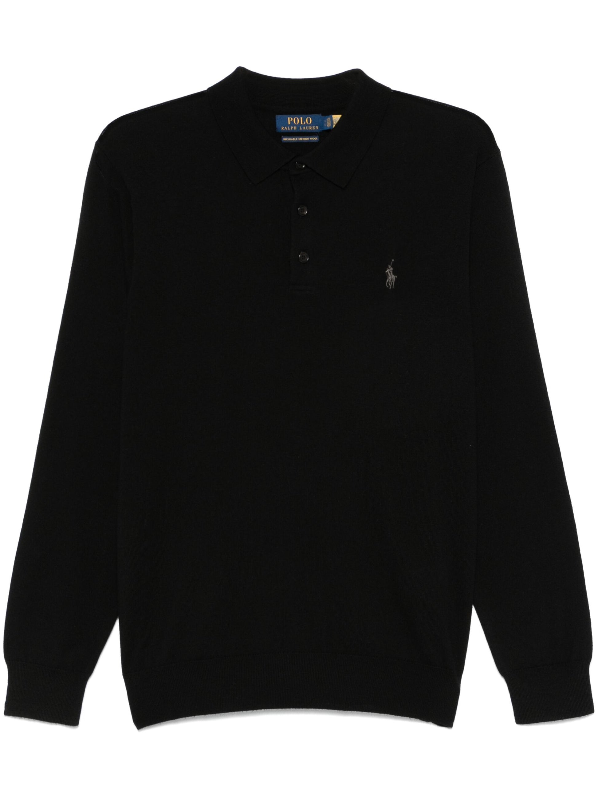 Made from high-quality, black wool, this Knitted Polo Shirt is designed for comfort and style. With a short front button fastening and long sleeves, this shirt features a signature Polo Pony embroidered to the chest. The ribbed cuffs and hem offer a modern touch to this classic design.