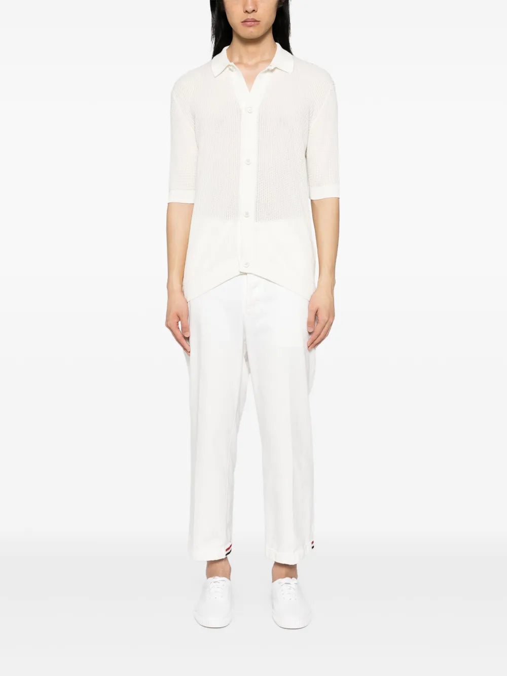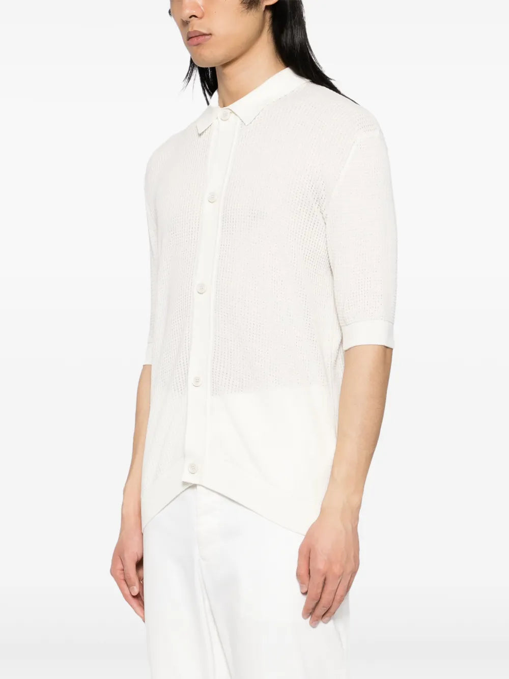 Elevate your wardrobe with our Knitted Shirt. The white front button fastening adds a touch of sophistication, while the ribbed cuffs and hem provide a comfortable fit. Perfect for any occasion, this shirt will elevate your style game.