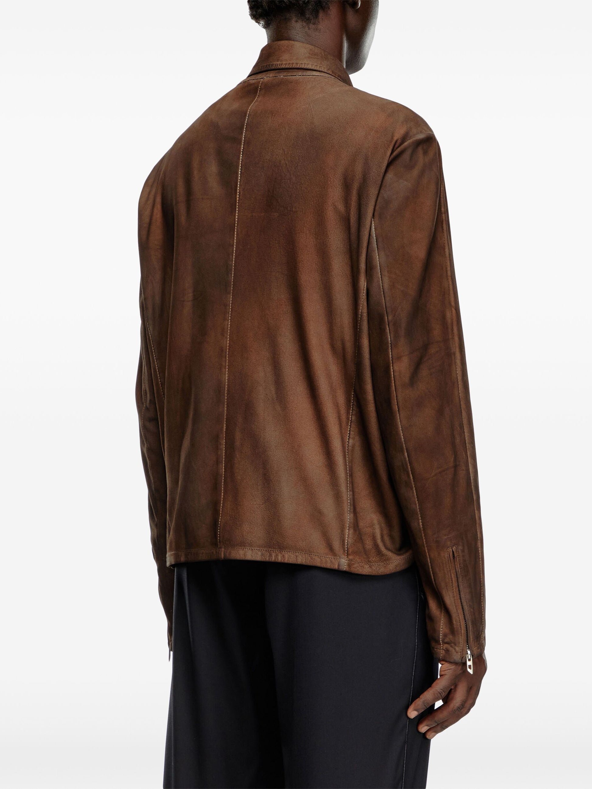 Expertly crafted from high-quality brown lambskin, the L-Crombe Zip-Up Leather Jacket boasts a classic collar, long sleeves, and a practical two-way zip fastening. With two side zip pockets and a straight hem, this jacket offers both style and functionality for any occasion. Upgrade your wardrobe with this must-have piece.