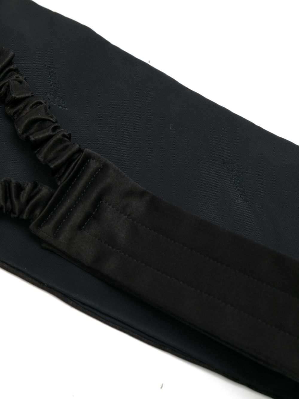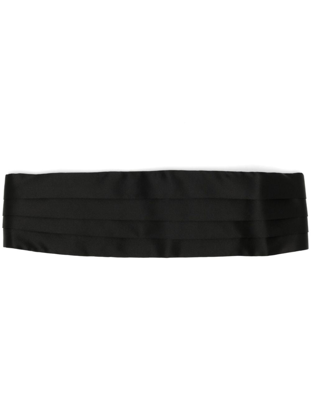This layered black silk belt boasts a sleek design, with a rear elasticated waistband and secure clasp fastening. Perfect for adding an elegant touch to any outfit, this belt is sure to provide both style and comfort.
