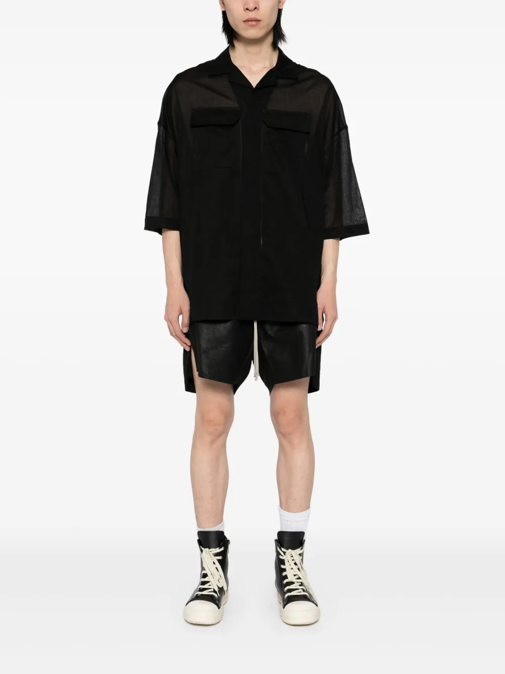 These black leather shorts feature an elasticated drawstring waistband, two side inset pockets, and a full lining. Designed with comfort and functionality in mind, they provide a secure fit and ample storage for your daily essentials. Expertly crafted, these shorts are a versatile addition to any wardrobe.